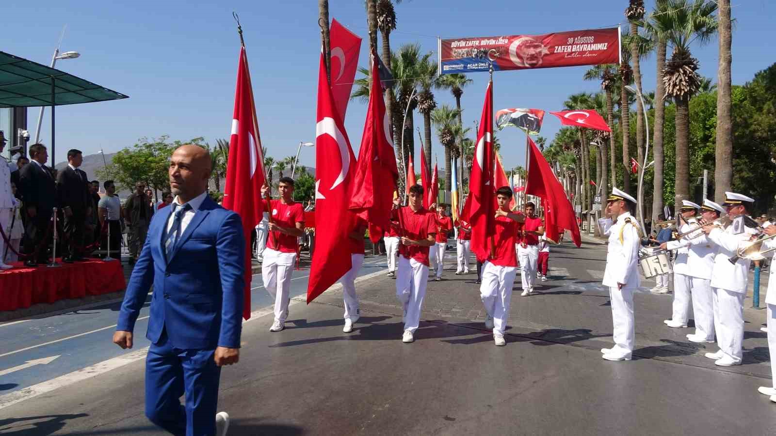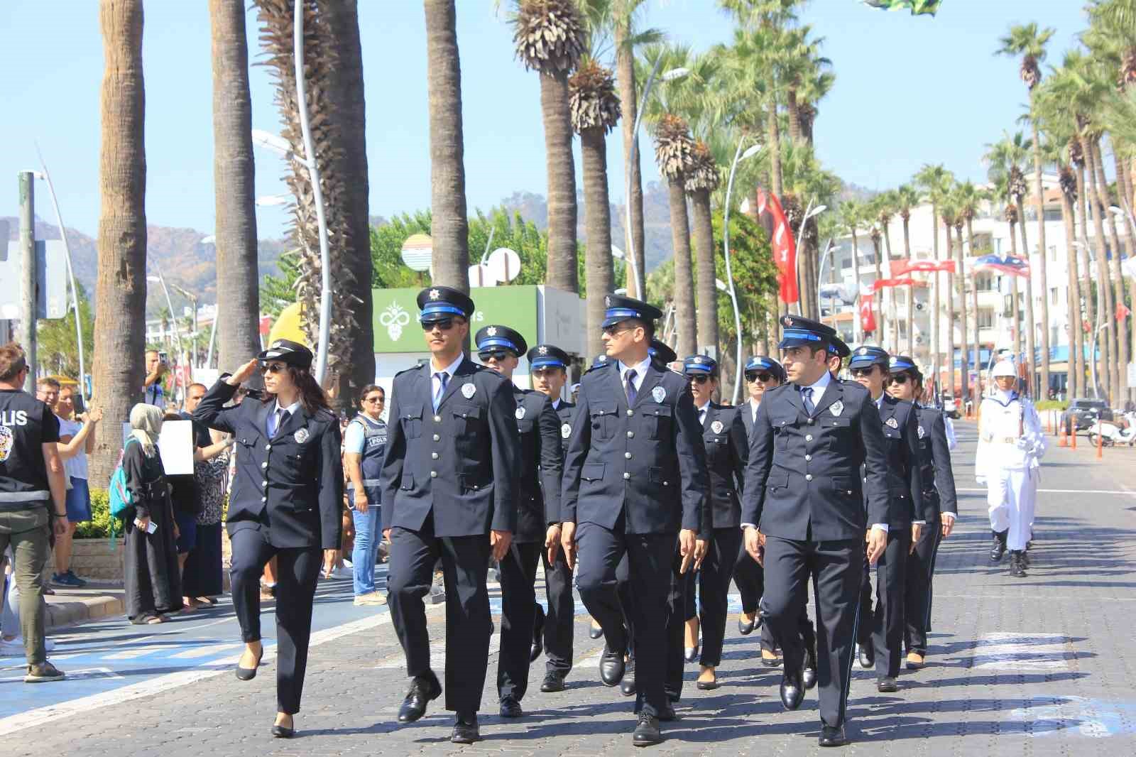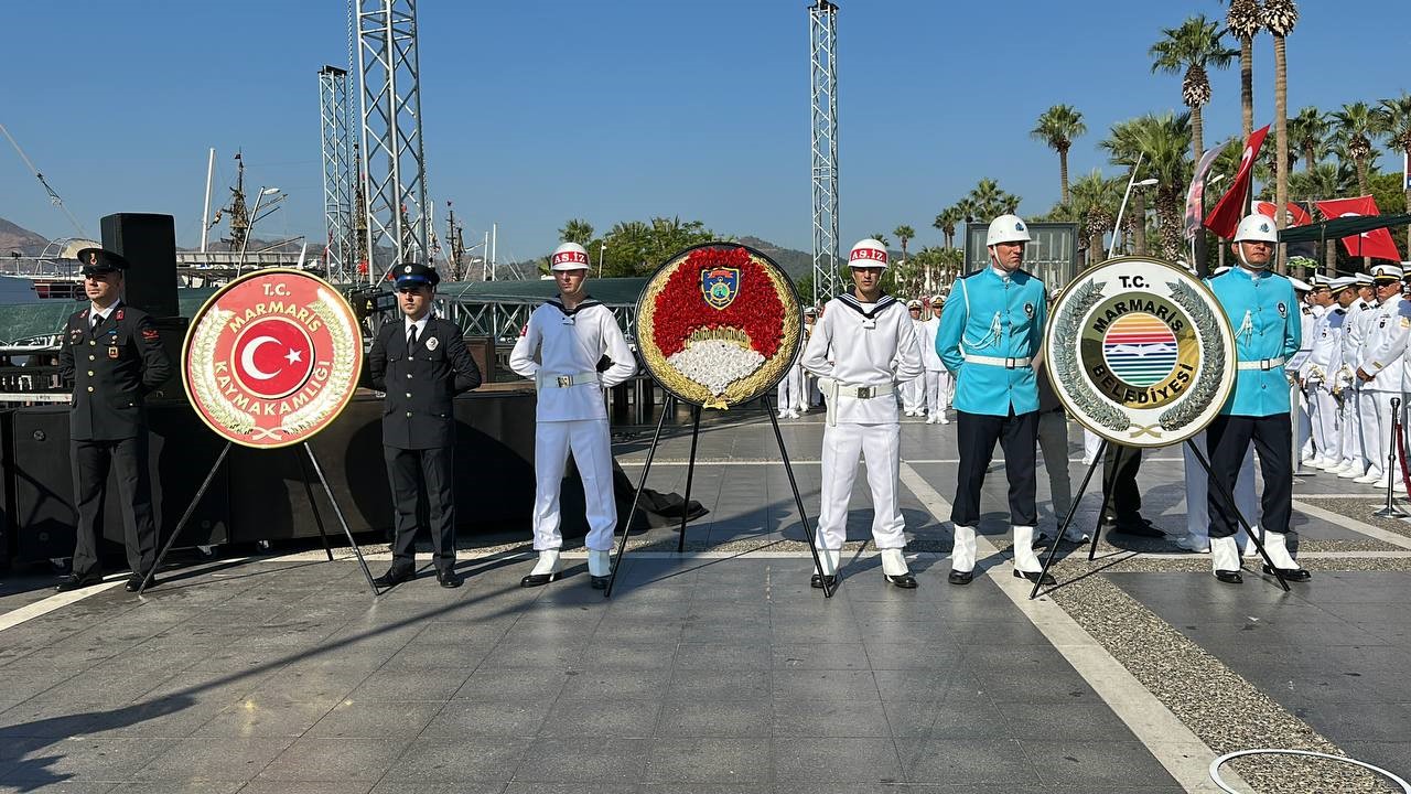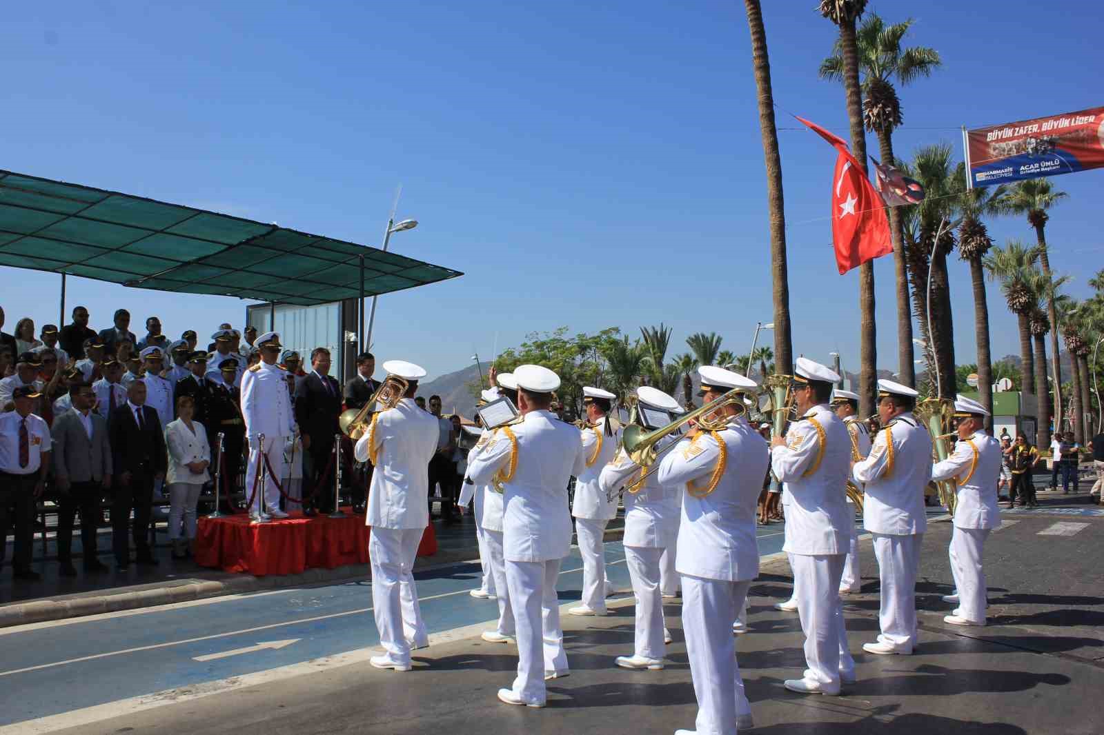 30 Ağustos Zafer Bayramı’nın 102. Yıldönümü tüm ülkede olduğu gibi çeşitli etkinliklerle kutlanmaya başlandı. Sabah Marmaris Atatürk Meydanı’nda başlayan etkinliklerde ilk olarak Atatürk Anıtı’na çelenk sunuldu. Marmaris Kaymakamlığı , Aksaz Garnizon Komutanlığı ve Marmaris Belediyesi çelenklerinin Atatürk Anıtına sunulmasının ardından Kaymakam Nurullah Kaya ve beraberindekiler kaymakamlık binasına geçerek tebrikleri kabul etti. Tebriklerin kabulünün ardından törenler Atatürk meydanı ve Ulusal Egemenlik caddesi üzerinde devam etti. Kaymakam Nurullah Kaya, Aksaz Garnizon Komutanı Tuğamiral Neslim Eski, Belediye Başkanı Acar Ünlü, CHP Muğla Milletvekili Gizem Özcan araç üzerinde, geçit töreni için hazırlanan personeli, protokol üyeleri ve vatandaşların bayramını kutladı.