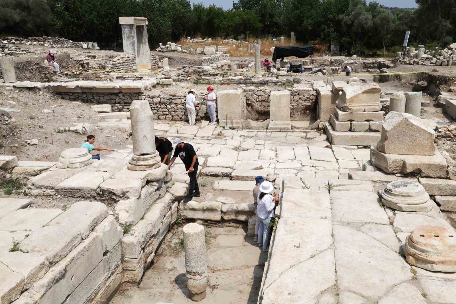 Stratonikeia ve Lagina Antik Kenti kazı Başkanı Pamukkale Üniversitesi öğretim üyesi Prof. Dr. Bilal Söğüt, “Yaptığımız iş çok keyifli bir iş. Yaptığımız bu iş bu sıcaklığı unutturuyor. Çalışma esnasında her an yeni bir buluntu ile karşı karşıya kalıyorsunuz. Öyle olunca da tüm yorgunluklarınızı unutturuyor. Bu mesleğin en güzel ve sevimli tarafı da bu. İnanılmaz derecede sıcak. Özellikle bu toprağın olduğu yerlerde sıcaklığı daha çok hissediliyor. Ama ekip arkadaşlarım ile hep birlikte çalışmaya devam ettiriyoruz. Sıcaklarda aslında ben sahaya hiç şapkasız çıkmıyorum. İkincisi çadır kuruyoruz. Çadır altında arkadaşlarımızın çalışmaları konusunda uyarıyoruz. Bunu dışında olabildiğince çalışma yapılan binaların gölgesinde, güneşin durumuna göre yer değiştiriyorlar. Bunun dışında tedbirler de alıyoruz. Sudur, ayrandır gibi sıvı takviye yapıyoruz. Biz yıllık ortalama 67’ye yakın araştırmacı arkadaşlar ile çalışıyoruz. Her meslekten arkadaşlarımız var. Şu anda burada Arkeolog, Sanat tarihçisi, mimarlar var, coğrafyacılar var. Her meslekten arkadaşımız var. Herkes kendi işini yapıyor. Bir elin parmakları gibiyiz biz burada. Birisi buluyor, birisi konserve ediyor, birisi restorasyonunu yapıyor, bir başka arkadaşımız çizimini yapıyor. Sonuçta güzel bir eser ortaya çıkıyor” dedi.