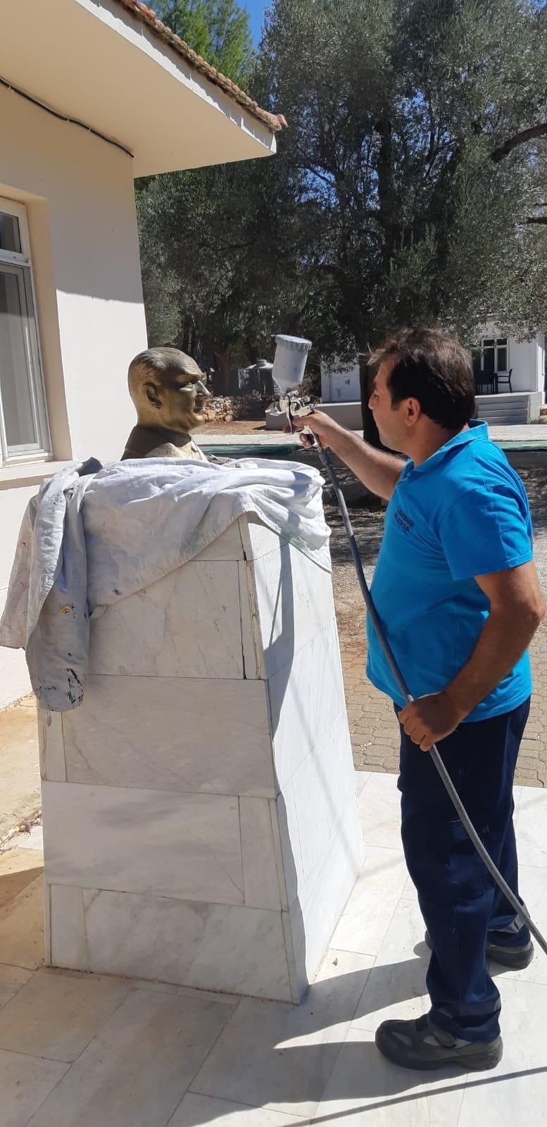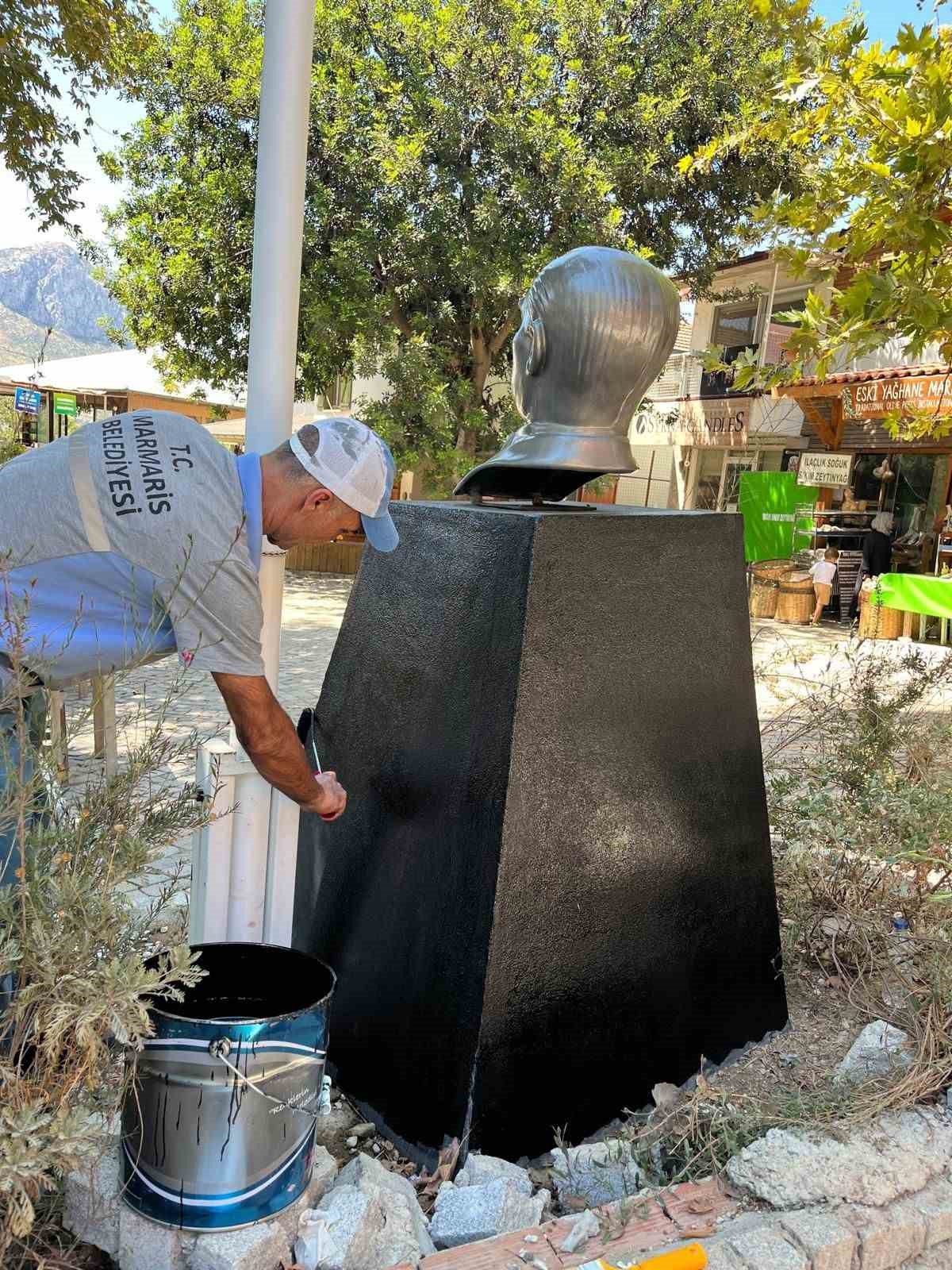 Atatürk’ün aziz hatırasını yaşatmak için Marmaris’in birçok noktasında yer alan Atatürk büstleri bakıma alındı.