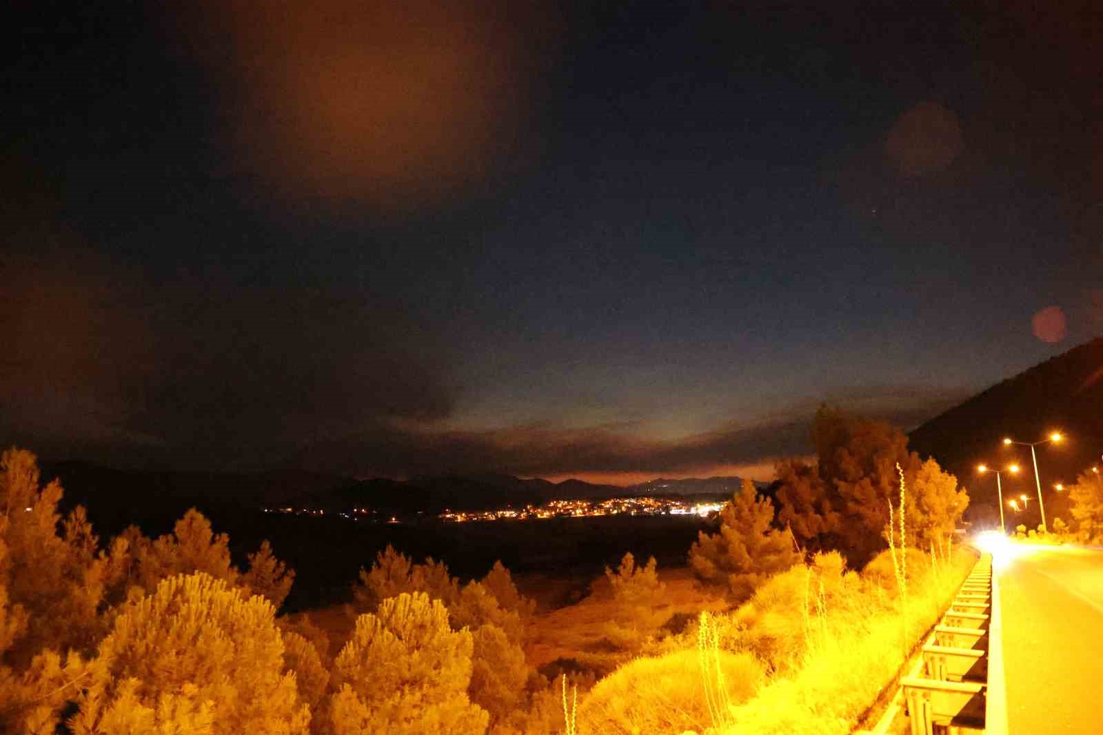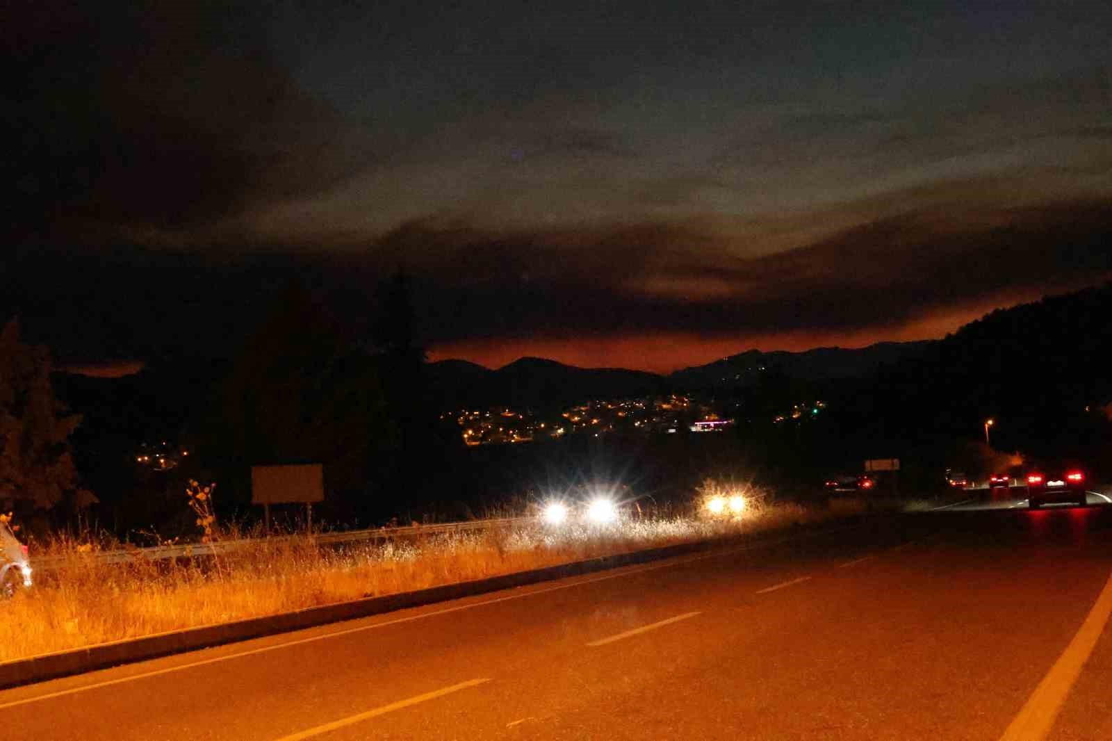 Aydın’ın Bozdağan ilçesi ve Muğla’nın Milas ilçesi Beçin mahallesinde başlayan yangını söndürme çalışmaları devam ederken, yangın rüzgarın da etkisi ile etkisini sürdürüyor. Havanın kararması ile hava müdahalesinin sona erdiği orman yangınının etkisi Menteşe’ye kadar ulaştı. Muğla’nın merkez ilçesi Menteşe’de havanın kararması sonrası gökyüzünü kara yangın bulutları kapladı.