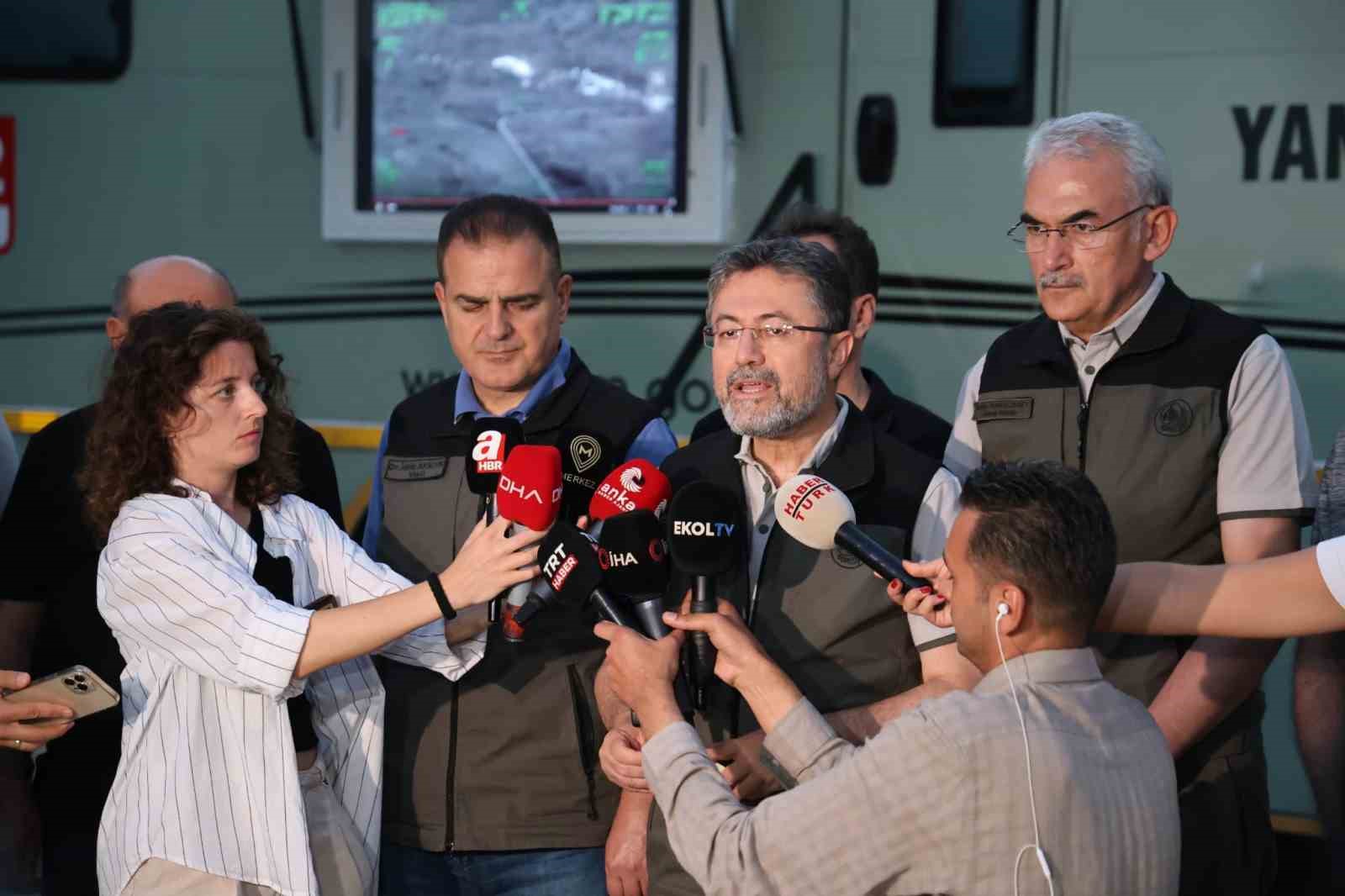Ülke genelindeki 5 büyük yangından Uşak Eşme yangınının kontrol altına alındığını ifade eden Bakan Yumaklı, “5 yangının aktif olarak devam ettiğini söylemiştim. Arkadaşlar müdahalelere devam ediyorlar. Farklı yollardan ulaşarak, yollar açarak, birbiri peşine hortumlar ekleyerek buralara ulaşıyorlar. Müdahaleler devam ediyor. Bu gece boyunca da devam edecek. Tehlike arz eden herhangi bir durum yok. Aydın Bozdoğan‘daki yangınla alakalı da arkadaşlarımız bütün gece müdahalelerine devam ettiler ve biraz önce biz keşiften döndük. Tekrar son haline baktık. Herhangi bir problem kalmamış görünüyor ve çok büyük oranda kontrol edildi. Yatağan’daki yangın içinde şu anda herhangi bir yerleşim yeri tehlikesi olmadığını söylemek istiyorum. Ula için gün boyu 11 uçak, 7 helikopter ve 210 personel sevk edildi. Yatağan’ın bir farkı var. Orası biraz daha yerleşim yerlerine yakın olduğu için Nebiköy, Kayırlı ve Ramada bu üç köyde 58 ev tedbiren tahliye edildi. Bir risk yok ancak yine de tedbirli olmakta fayda var. Bir bölümü itibari ile bazı yolların kapatılması söz konusu olmuştu ama akşam rahatlayınca bu yollarda açılmış oldu” dedi.