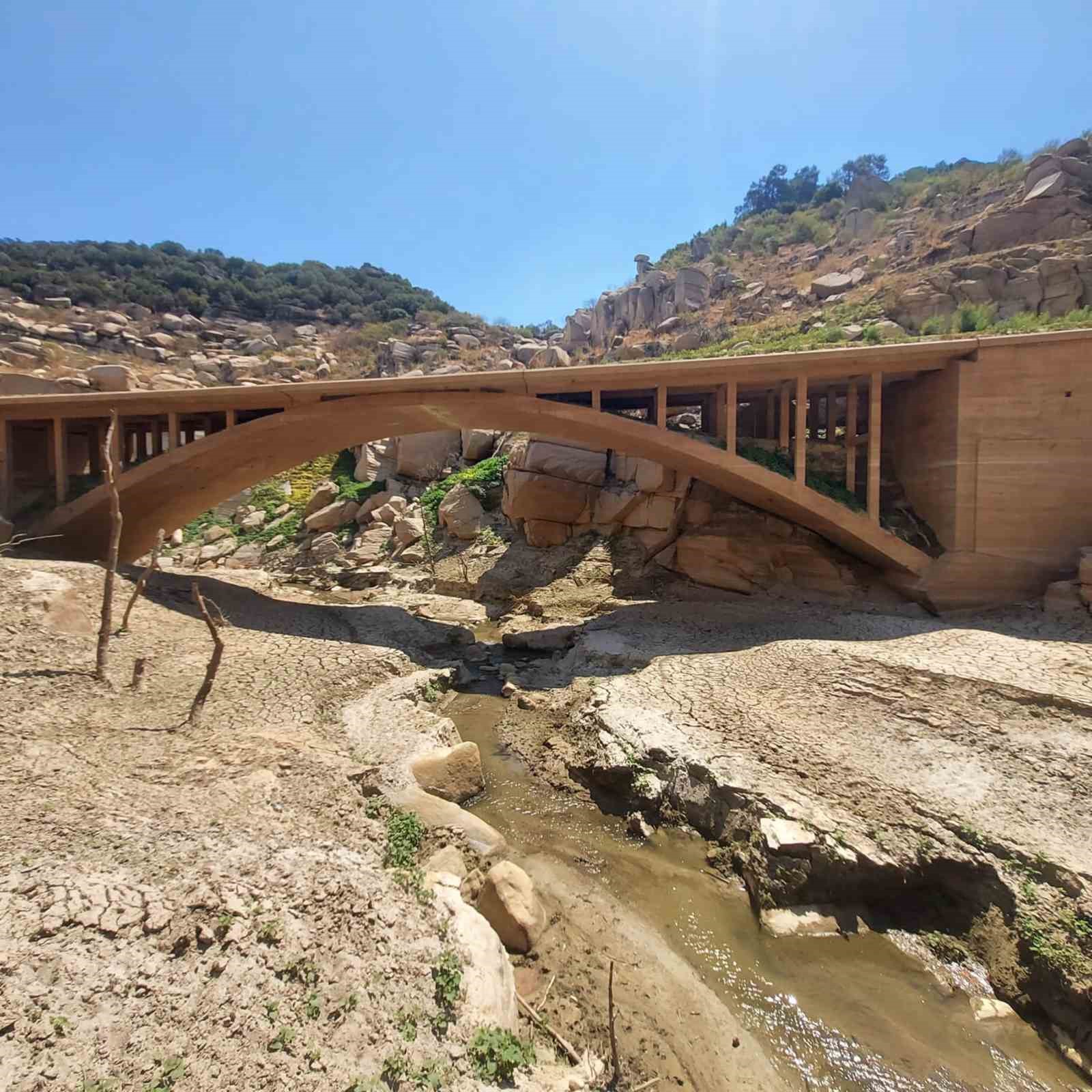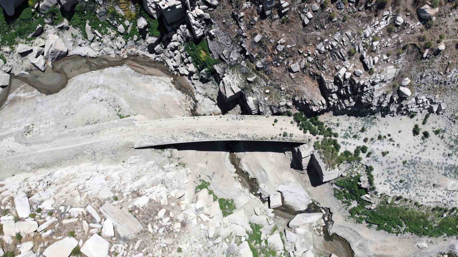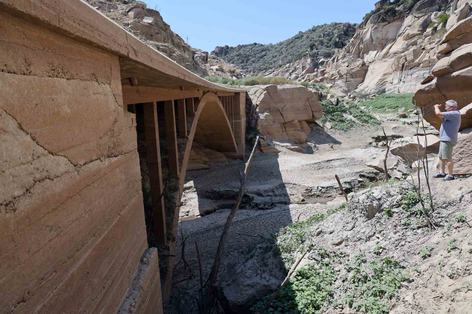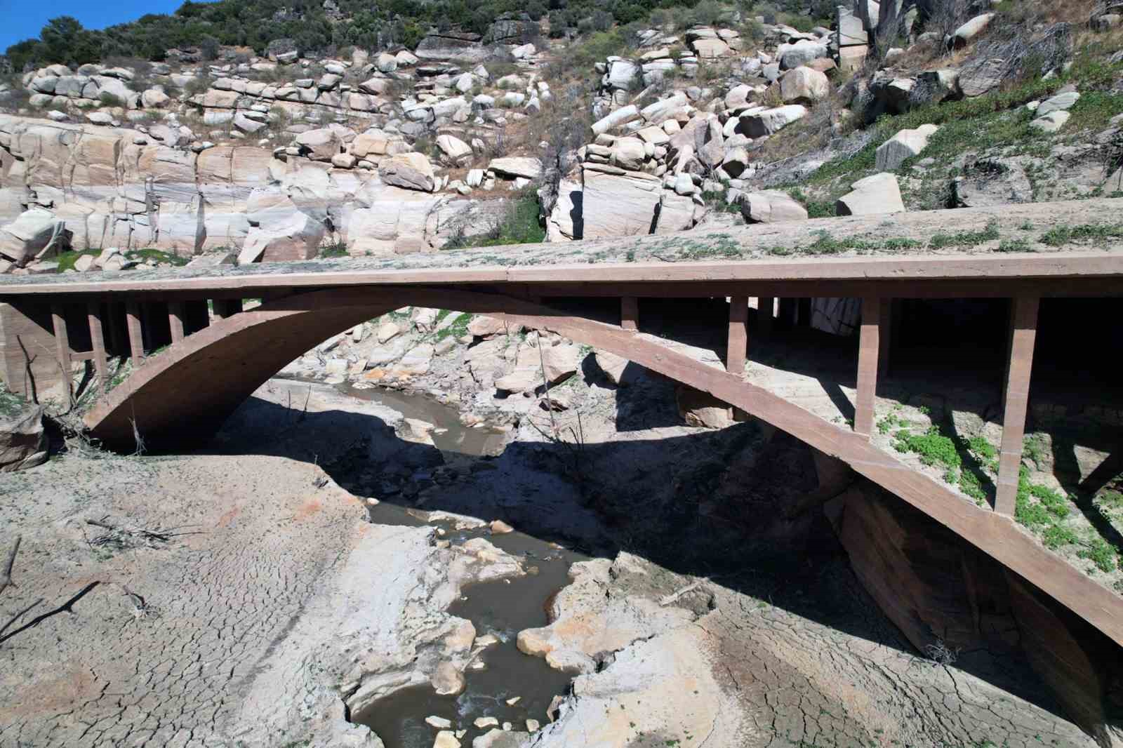 Yatağanlı tarih araştırmacısı Tarcan Oğuz, baraj sularının çekilmesi ile 100 yıllık beton köprünün ortaya çıktığını açıkladı. Oğuz, “Bulunduğumuz mevki Yatağan Gökbel Mevki Marsias vadisi. Bu çay da Marsias çayı. Yatağan-Çine ulaşım yolu üzerindeki yaklaşık 100 yıllık köprü Marsias çayının sularının azılmasından dolayı köprü yüzeye çıktı. Daha ileride İncekemer Köprüsü bulunmakta. 2 bin 200 yıllık İncekemer Köprüsü aynı zamanda ‘Gelin Geçmez Köprüsü’ olarak da adlandırılmaktadır. O köprü koruma altına alındı. Bu köprünün koruma altına alınmamasının sebebi tarihi köprü olmamasından kaynaklı” dedi.