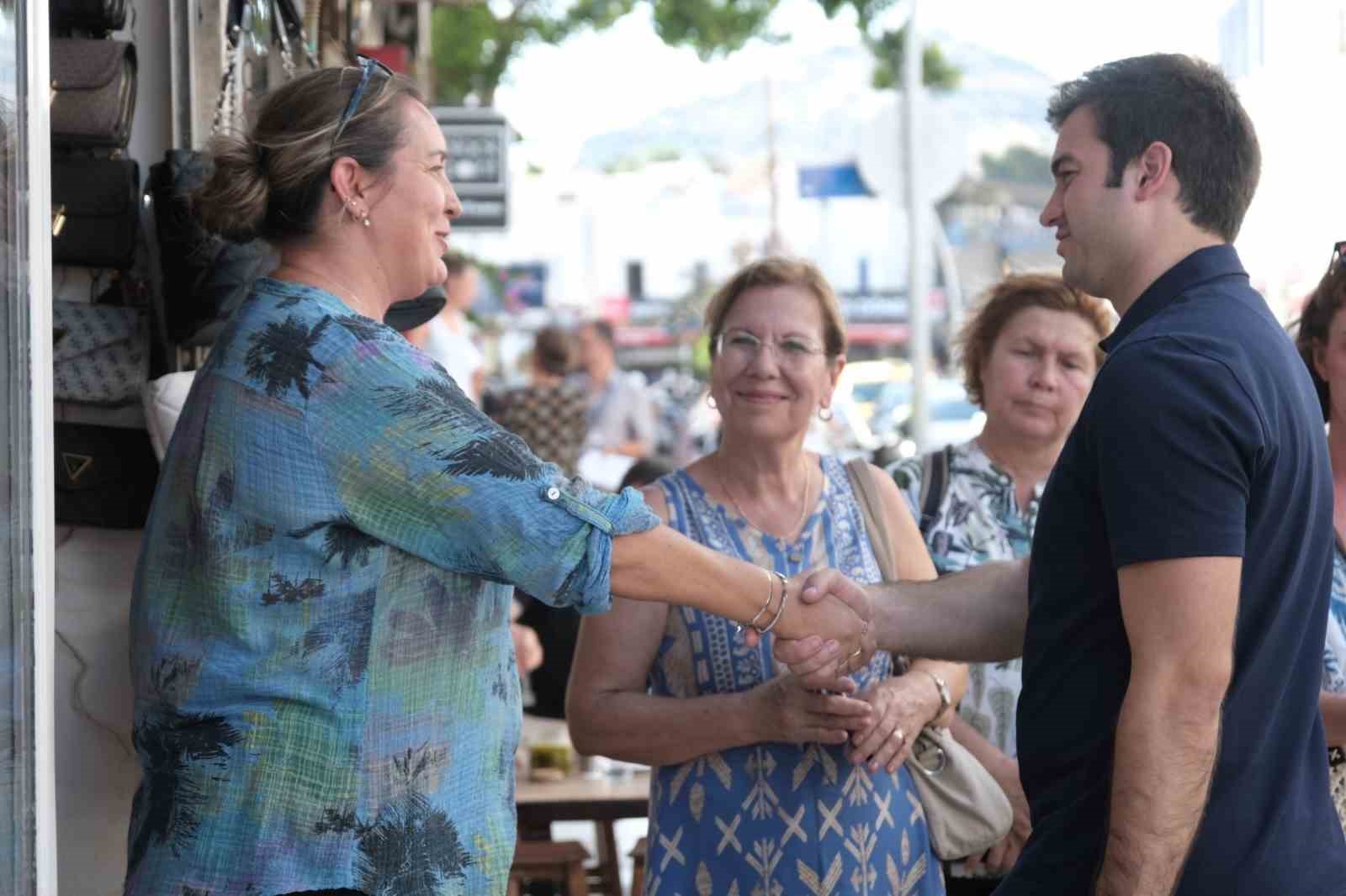 Bodrum Belediye Başkanı Tamer Mandalinci saha ziyaretlerine Çarşı ve Kumbahçe mahalleleri ile Türkkuyusu, Kale ve Atatürk caddelerinde devam etti.