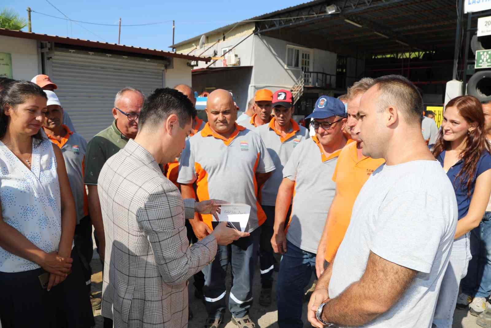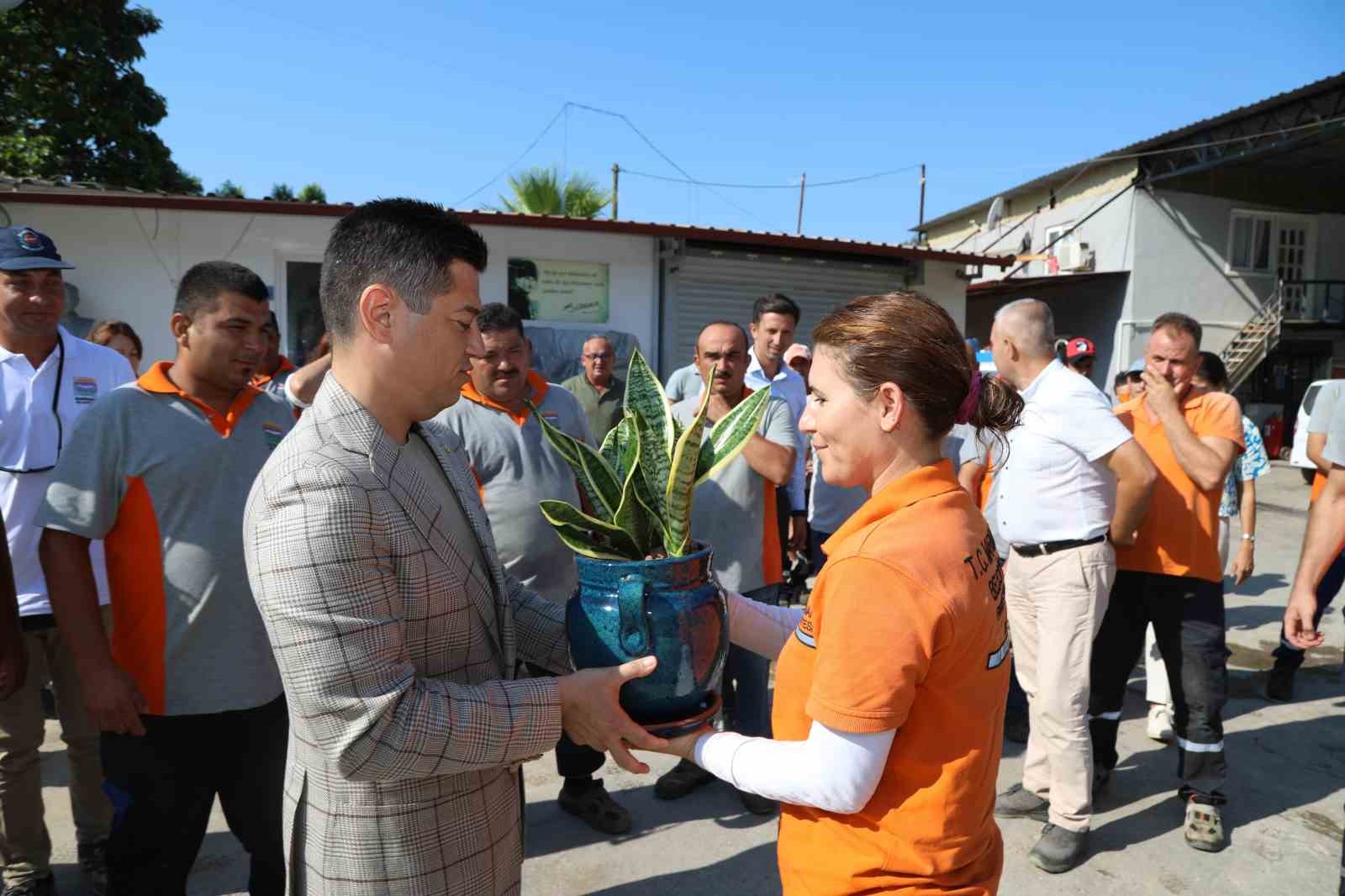 Başkan Ünlü, “Marmaris’imizi güzelleştirmek, nefes alabileceğimiz yeni alanlar oluşturmak ve çocuklarımızın keyifle vakit geçireceği parklar yapmak için durmaksızın çalışan emekçilerimizle güzel bir sabaha merhaba dedik. Sahada yaşadıkları deneyimleri bizlerle paylaşan personelimizle bol bol sohbet ettik. Her şart altında Marmaris için özveriyle çalışıp alın teri döken müdürlük personelimize teşekkür ediyor; çalışmalarında kolaylıklar diliyorum” derken Park ve Bahçeler müdürlüğü personeli de Başkan Ünlü’ye çiçek hediye etti.
