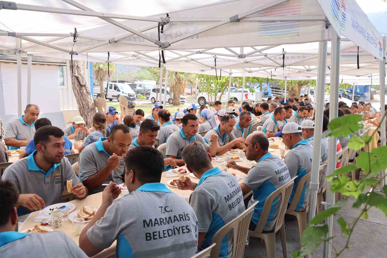 Marmaris Belediye Başkanı Acar Ünlü, Belediye çalışanlarıyla her fırsatta buluşmaya devam ediyor. Geçen hafta Fen İşleri Müdürlüğü personeliyle bir araya gelen Başkan Ünlü bu kez de Temizlik İşleri Müdürlüğü çalışanlarıyla kahvaltı yaptı. Makine Araç Parkı’nda gerçekleşen etkinliğe müdürlüğün tüm kademelerinde görev alan yaklaşık 120 çalışanı katıldı.