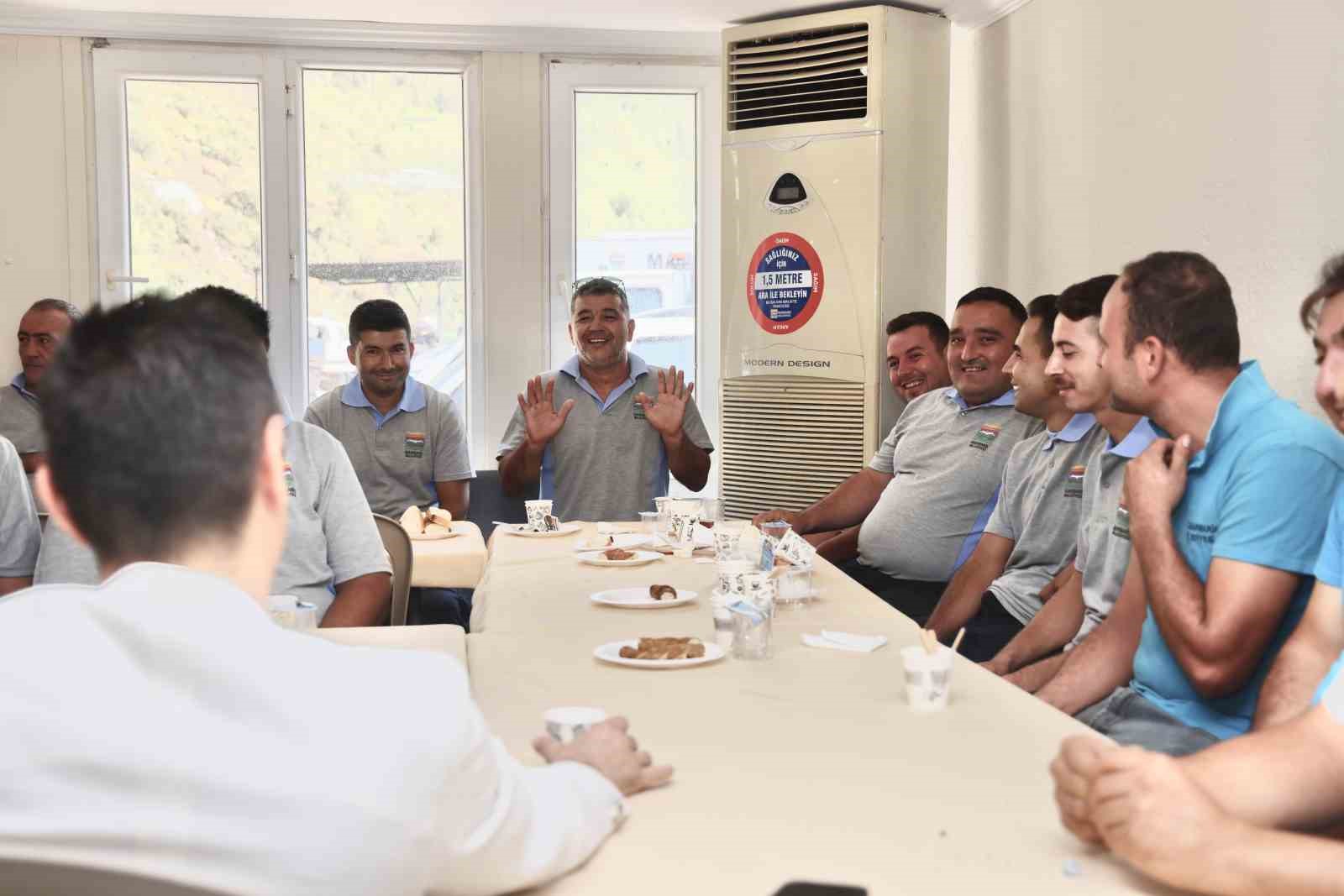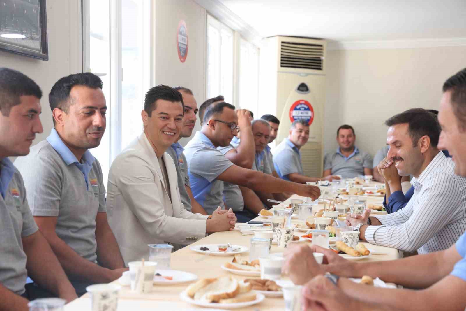 Marmaris Belediye Başkanı Acar Ünlü, Belediye’nin dış birimlerde çalışan personeliyle kahvaltıda buluşmayı sürdürüyor. Başkan Ünlü, Temizlik ve Fen İşleri Müdürlüğü’nün ardından bugün de Destek Hizmetleri Müdürlüğü’nde görevli çalışanlarla Makine Araç Parkı’nda düzenlenen kahvaltıda bir araya geldi. Etkinliğe bu kez birim müdürleri de katıldı. Keyifli bir ortamda geçen kahvaltıda Başkan Ünlü Destek personeliyle sohbet etti, çalışanların sahada yaşadıklarını ve taleplerini dinledi. Başkan Ünlü’ye müdürlükte görevli Ramazan Süzgeç’in ahşap üstü yakma tekniğiyle yaptığı Atatürk portresi hediye edilirken, Belediye Başkanı Ünlü de Marmaris’i daha güzel ve estetik kılmak için büyük bir gayretle çalışan müdürlük personeline teşekkür ederek; özveriyle yürüttükleri çalışmalarında kolaylıklar diledi.