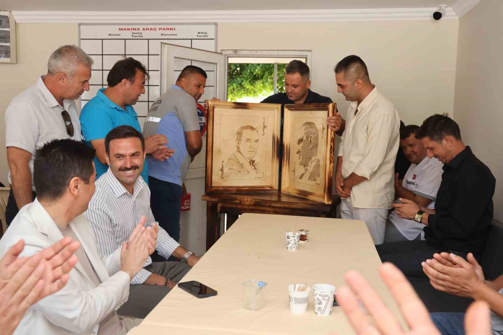 Marmaris Belediyesi Destek Hizmetleri Müdürlüğü personeli kahvaltıda buluştukları Marmaris Belediye Başkanı Acar Ünlü’ye Atatürk Portresi hediye etti.