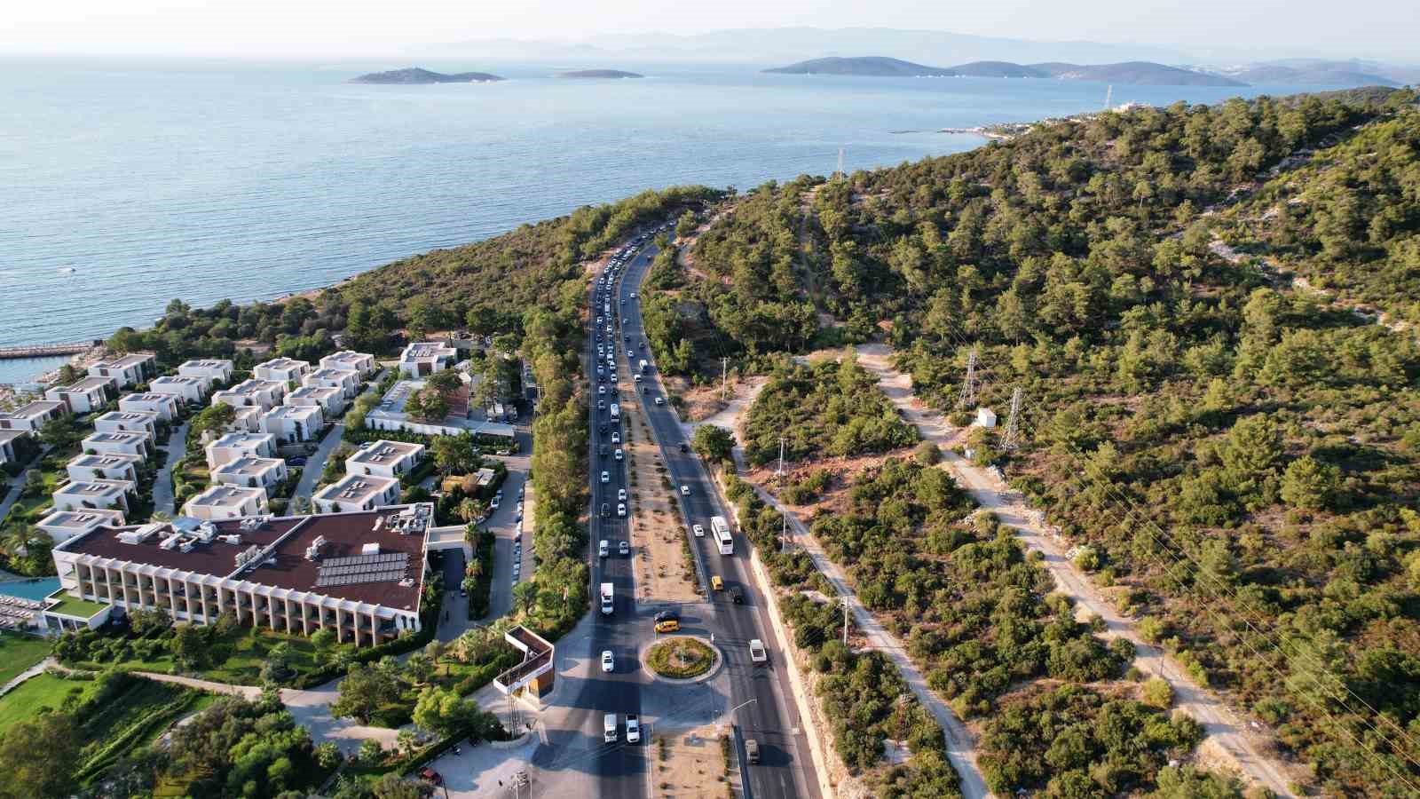 Trafik yoğunluğu, dron ile havadan görüntülendi. Görüntülerde kilometrelerce uzunluktaki araç kuyrukları net bir şekilde görüldü. Özellikle Bodrum’un giriş noktalarında yaşanan yoğunluk, havadan bakıldığında daha da çarpıcı bir şekilde ortaya çıktı.