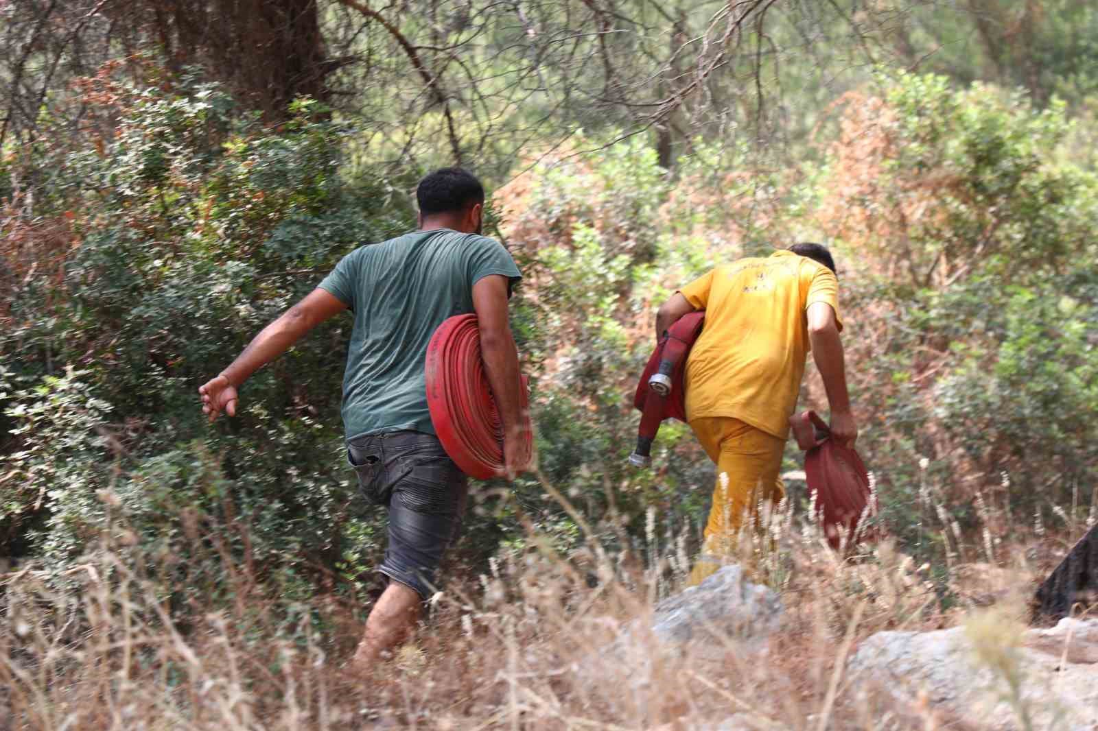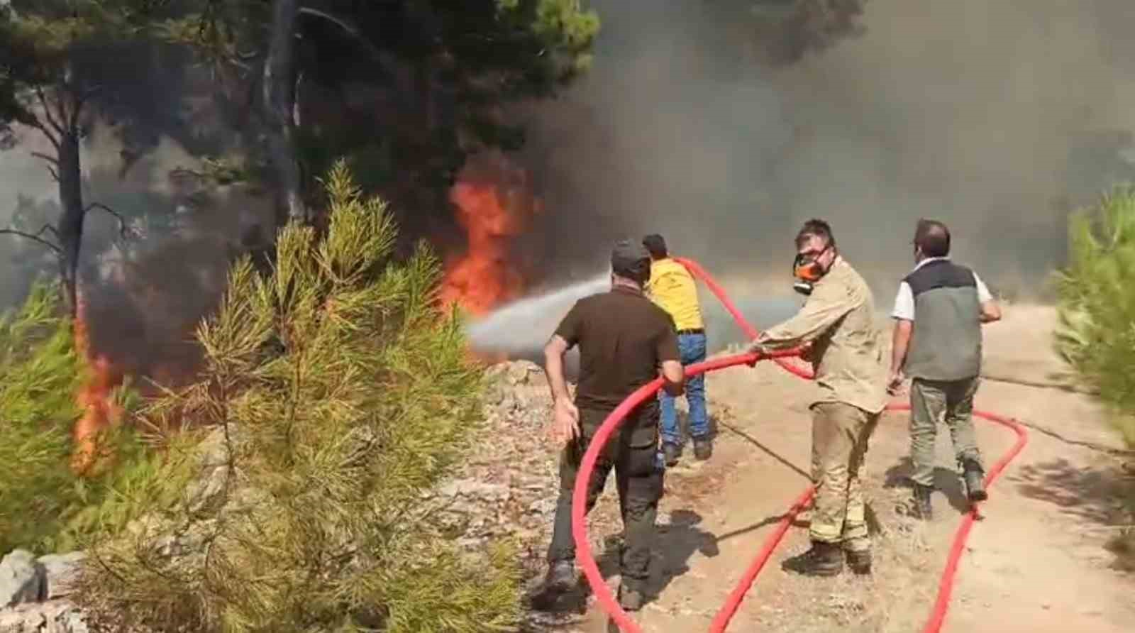 Muğla’nın Bodrum ilçesinde meydana gelen ve rüzgarın etkisiyle geniş bir alana yayılan orman yangınının kontrol altına alınması için yoğun çaba sarf eden ’Ateş Savaşçıları’, alevlerle adeta göğüs göğüse mücadele ediyor.