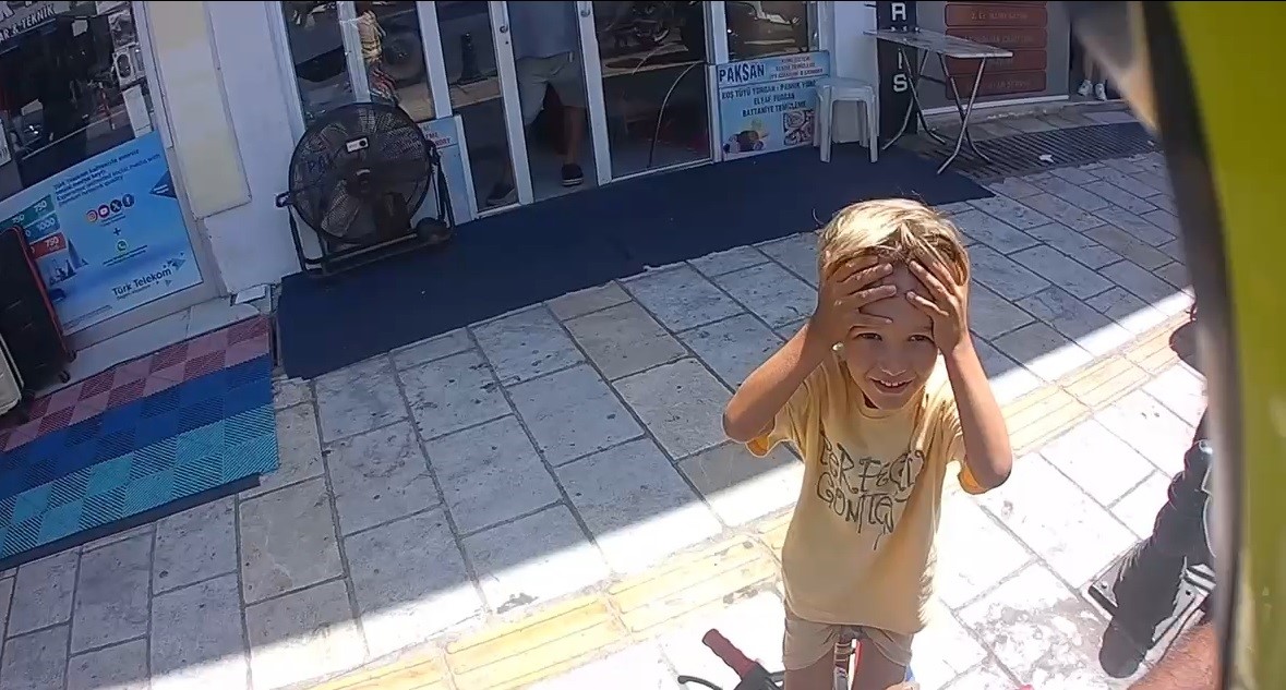 Muğla’nın Bodrum ilçesinde trafik polisi ile kaldırımda bisiklet süren çocuğun sevimli diyaloğu gülümsetti.