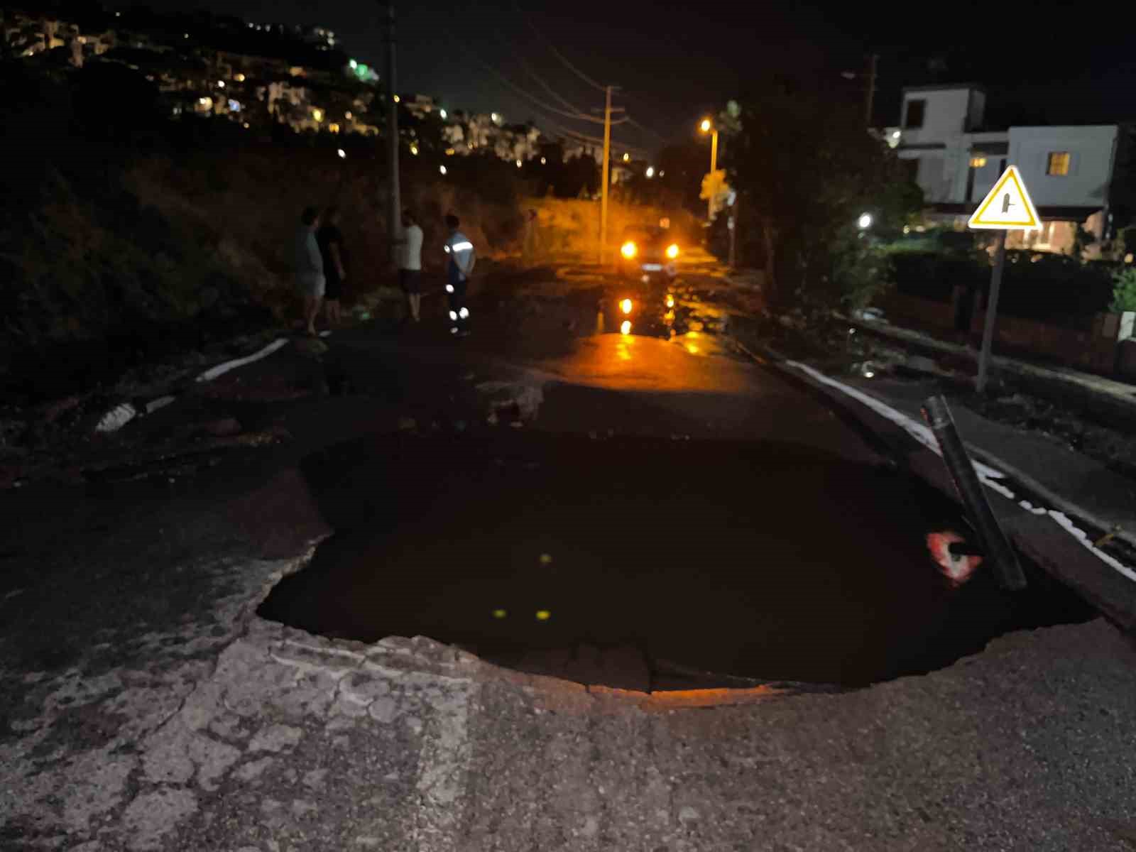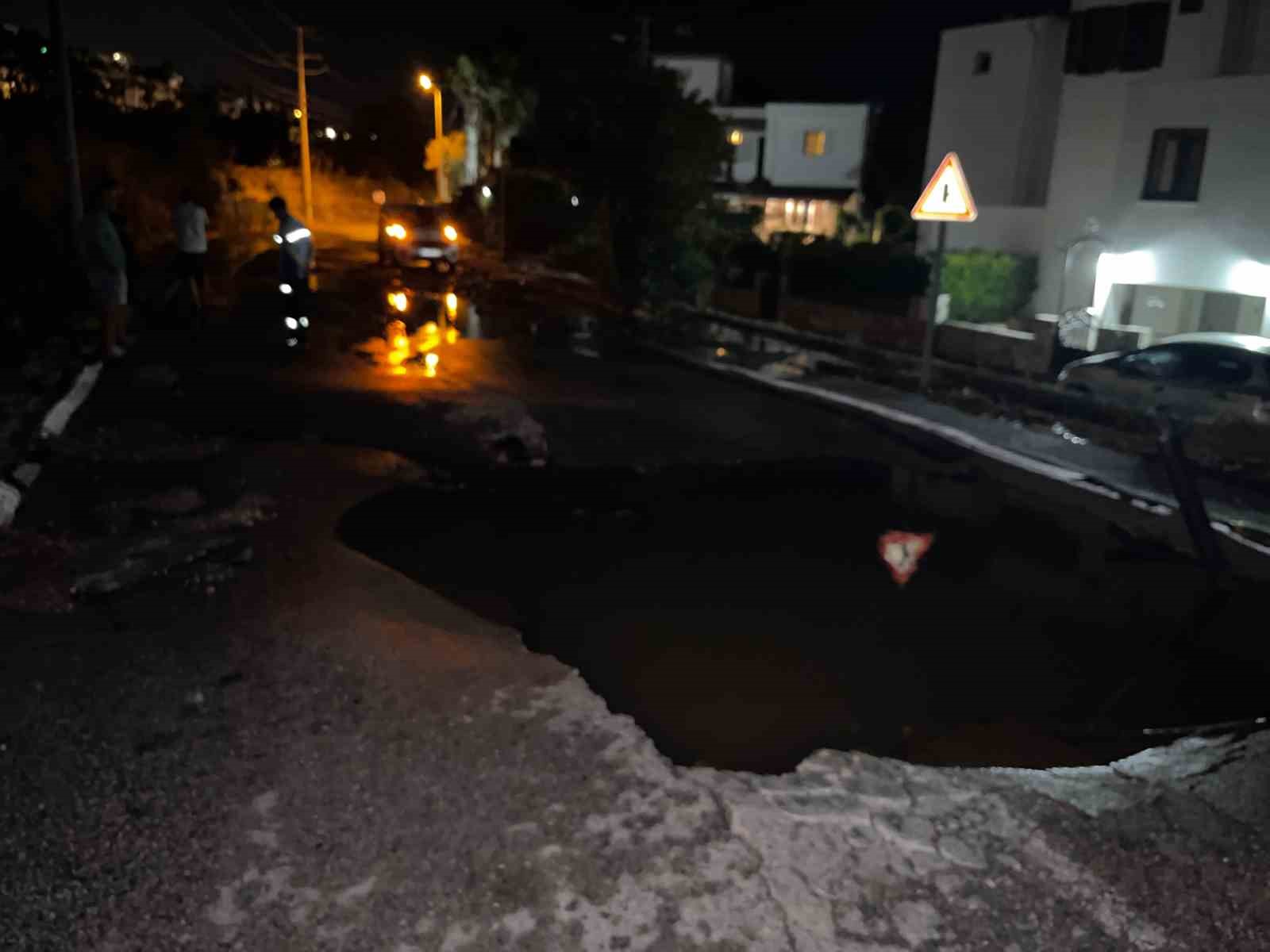 Muğla’nın Bodrum ilçesi Ortakent Yahşi Mahallesi’nde, Kargı Caddesi’nde meydana gelen ana su hattı patlaması sonucu cadde adeta göle döndü. Patlama, Kargı Caddesi üzerinde bulunan bir evin bahçesini tamamen suyla doldurdu.