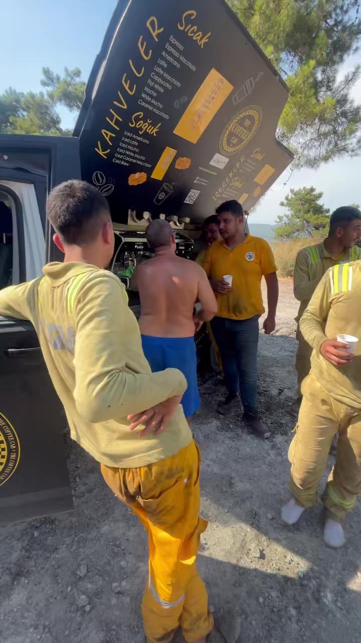 Muğla’nın Bodrum ilçesi Pınarlıbelen Mahallesi’nde çıkan ve 18 saat süren orman yangınına müdahale eden orman ekiplerine, duyarlı bir vatandaşın soğuk kahve ikramı moral oldu. Yangın söndürme çalışmalarının en yoğun olduğu anlarda bölgeye soğuk kahve satışı minibüsü ile gelen Bahadır Tümayman isimli vatandaş, ekiplere soğuk su ve soğuk kahve ikram etti.