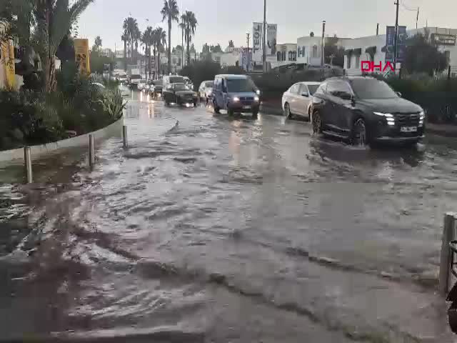 Muğla- Bodrum’da sağanak; yollar göle döndü