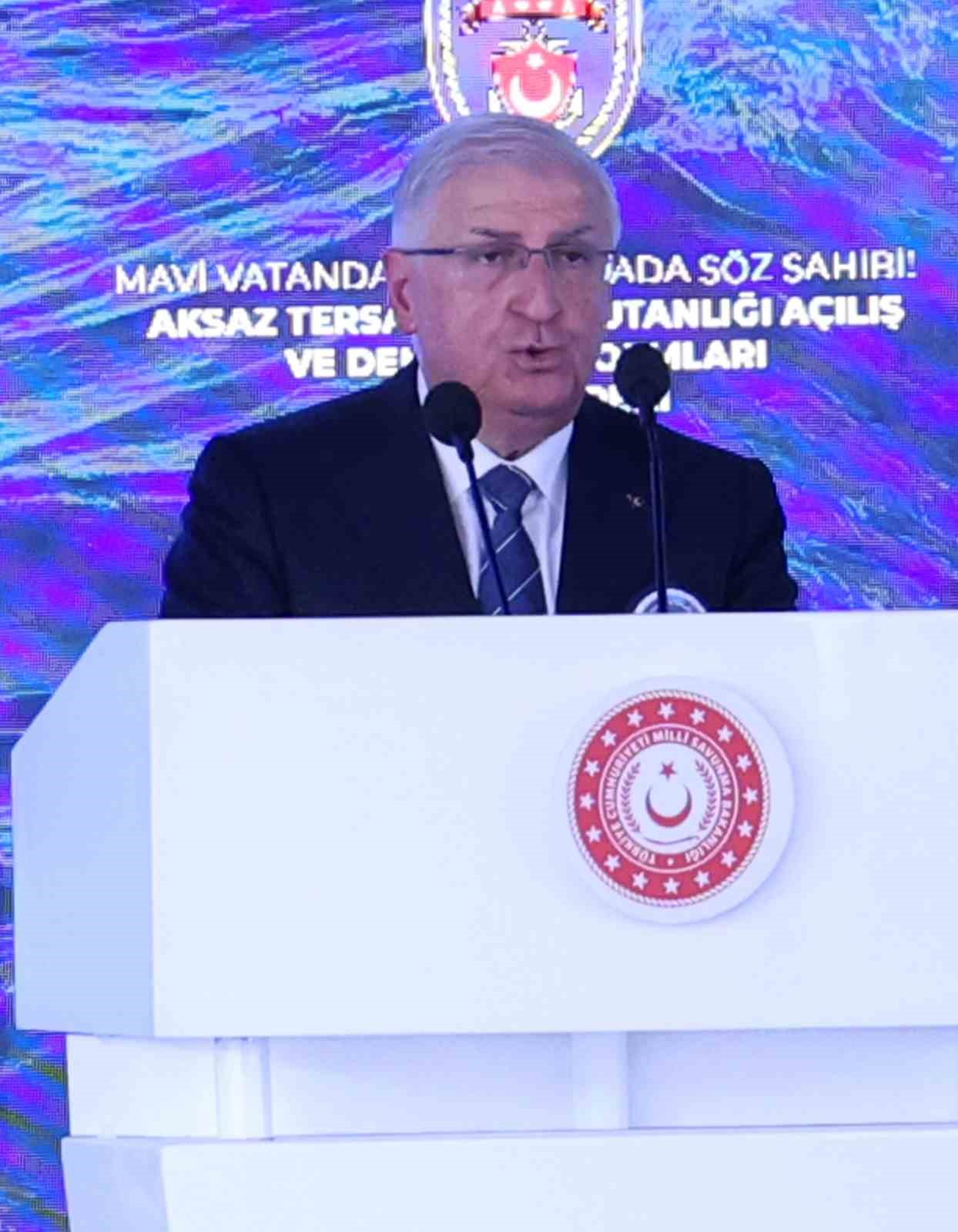 Milli Savunma Bakanı Yaşar Güler de, “Bugün, yerli ve milli savunma sanayimizin ulaştığı üstün seviyeyi ortaya koyan yeni tip denizaltımız ve akaryakıt gemilerimiz ile bu alandaki yüksek tesisleşme seviyemizin göstergesi Aksaz Tersanemizin ve denizaltı havuzumuzun hizmete girmesinin haklı gururunu yaşıyoruz. Bu anlamlı töreni teşriflerinizle bizleri onurlandırdığınız için zât-ı devletlerine şükranlarımı arz ediyor; Bu güzide sistem ve tesislerin; ülkemize, asil milletimize ve Silahlı Kuvvetlerimize hayırlı, uğurlu olmasını diliyorum. Önceden, savunma sanayisi ne yazık ki dışa bağımlı olan, kısıtlı imkânlarla varlık yokluk mücadelesi veren bir ülkeydik. Parasını ödediğimiz halde ürünlerimizi teslim alamadığımız günleri, türlü engellemelere ve zorluklara maruz kaldığımız zamanları, bir an olsun unutmadık. Nice badirelerle karşılaşsak da tarihte olduğu gibi, yılmadan yorulmadan çalışmaya devam ettik. Özellikle son 20 yılda, Zât-ı âlilerinin stratejik vizyonu, liderliği ve kararlı duruşları sayesinde Türkiye; kendi gemilerini ve silah sistemlerini tasarlayıp üretebilen ve bu ürünleri ihraç ederek uluslararası pazarda adından övgüyle söz ettiren bir ülke haline geldi. Bir asır önce, ithal edeceğimiz iki gemiye ihtiyaç duyuyorken; bugün, aynı anda birçok silah sistemini yerli ve millî imkânlarıyla üreten ve ihraç eden bir ülke konumundayız. İbn-i Haldun’un dediği gibi “Coğrafya kaderdir.” Denizlerimiz de bu kaderin, ayrılmaz bir parçası ve kuvvet çarpanıdır. Dolayısıyla üç tarafı denizlerle çevrili ülkemizin, hakkını ve hukukunu korumak için güçlü bir Deniz Kuvvetine sahip olmamız bir tercih değil, zorunluluktur. Bu bilinçle, şanlı Türk donanmasını daha modern, daha etkin ve daha güçlü kılmak için, deniz savunma sanayinde de büyük aşamalar kat ettik, ediyoruz. Yerli, millî ve modern savunma sanayimizin yeni göz bebeği olan ve bugün hayata geçirilmesine şahitlik ettiğimiz sistem ve tesisler de, bu gayretlerimizin somut birer neticesidir” dedi.