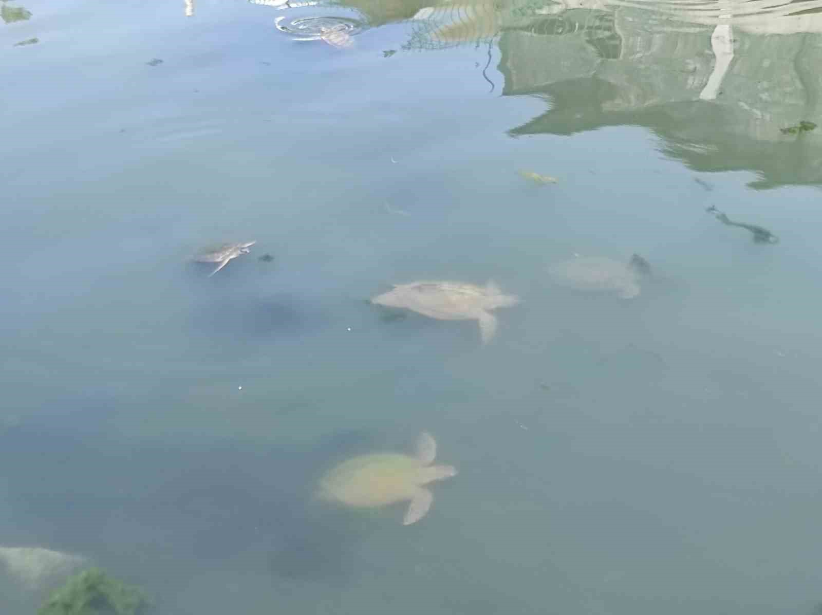 Fethiye’de salı pazarı meydanından denize dökülen kanal, hayvan çeşitliliği ile yerli ve yabancı turistlerin ilgi odağı oldu. Caretta carettadan balıklara, kuşlardan ördeklere kadar birçok farklı türe ev sahipliği yapan kanal, bugün yaklaşık 10’a yakın caretta carettanın beslenme ve dinlenme noktası haline geldi. Günün belirli saatlerinde kanala gelerek yiyecek arayışına çıkan caretta carettalar, suyun yüzeyinde yüzerken görsel şölen oluşturdu. Özellikle sabah ve akşam saatlerinde gözlemlenen bu etkileyici manzara, Fethiye’nin doğal çekiciliğini ve zengin deniz yaşamını bir kez daha ortaya koyuyor. İlçede Salı günleri kurulan semt pazarına gelen yerli ve yabancı turistler ise caretta carettaları gözlemlemek için dakikalarca kanalı seyrediyor.