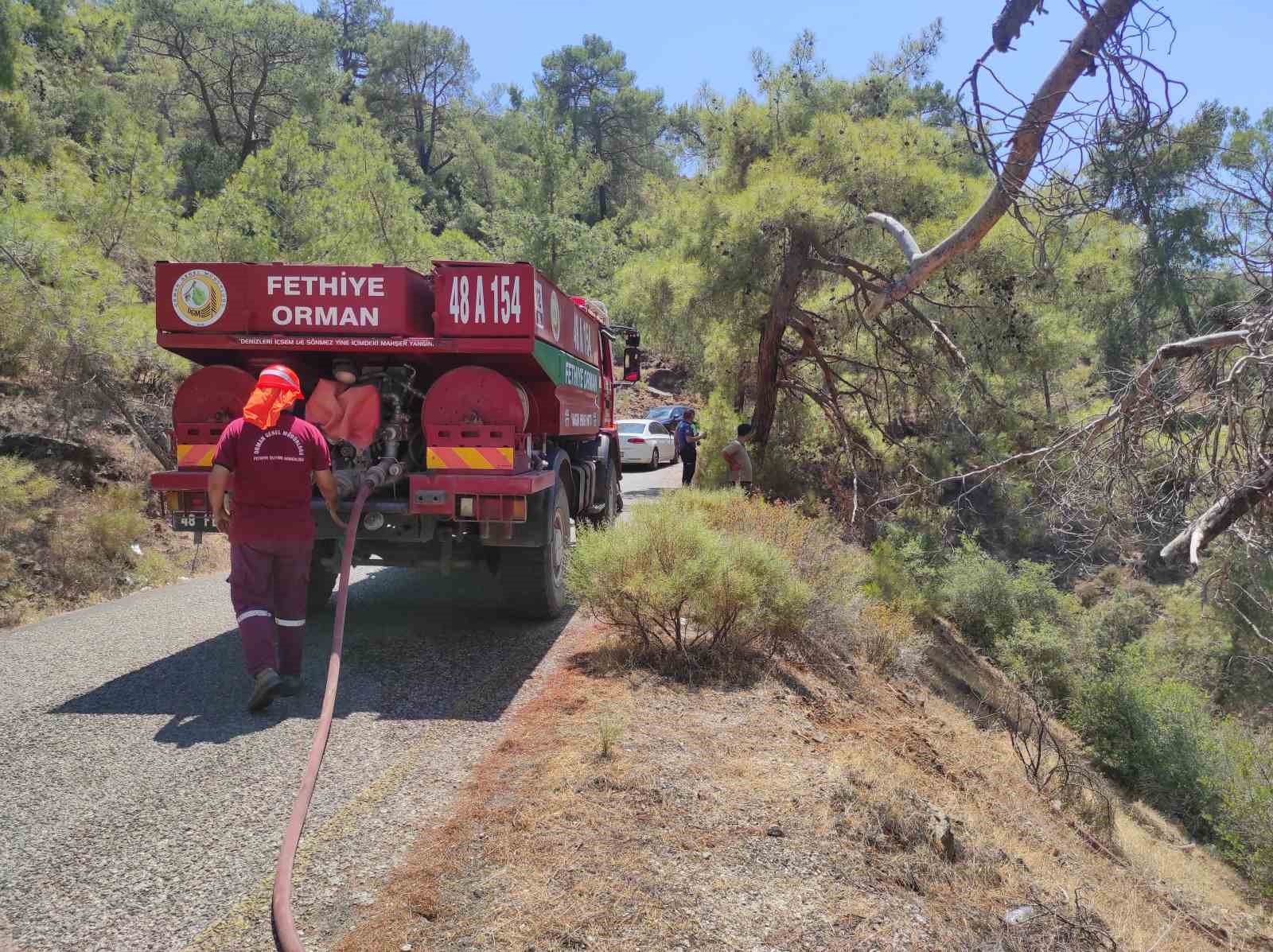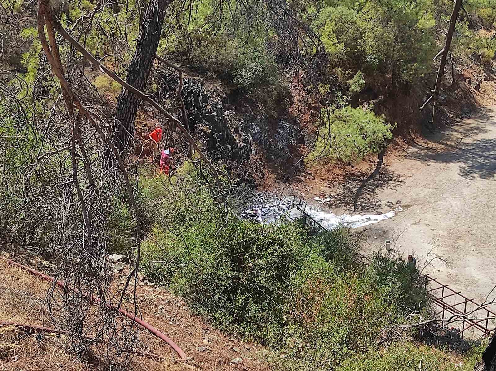 Fethiye’nin Karakeçililer Mahallesi’nde bulunan Küçük Samanlık Plajı’nda bulunan çöp konteynırlarında yangın meydana geldi. Alevleri gören vatandaşlar 112 Acil Çağrı Merkezi’ne ihbarda bulundu. İhbar üzerine olay yerine orman ve polis ekipleri sevk edildi. Arazözle yangına müdahale eden ekipler kısmen ormana sıçrayan yangını kısa sürede kontrol altına aldı. Soğutma çalışmalarının ardından yangının çıkış nedeni için inceleme başlatıldı.