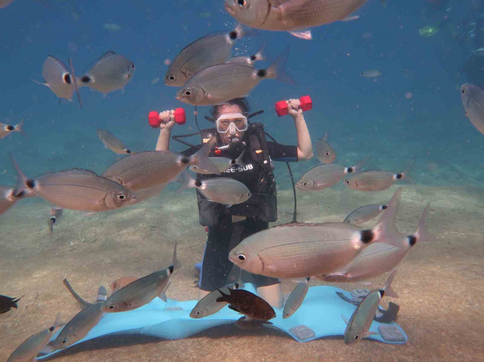 Fethiye’de sağlıklı yaşama dikkat çekmek amacıyla gerçekleştirilen su altı spor etkinliği büyük ilgi gördü. Dalış okulu sahibi Önder Diktaş ve sporcu Sevil Toker, Dalyan Koyu açıklarında 5 metre derinliğe dalış yaparak, deniz dibinde spor yaptı. Sevil Toker, dalış sırasında deniz tabanına serdiği spor matı üzerinde ağırlık kaldırma hareketleri gerçekleştirdi. Su altı kamerası ile kaydedilen bu ilginç spor etkinliği esnasında, dalgıçların önünde yüzen balıklar ise renkli görüntüler oluşturdu. Etkinlik hakkında konuşan Önder Diktaş, su altı sporunun sağlıklı yaşama dikkat çekmenin etkili bir yolu olduğunu belirterek, “Hem su altının büyüleyici dünyasını tanıtmak hem de sağlıklı yaşamın önemine vurgu yapmak istedik” dedi.