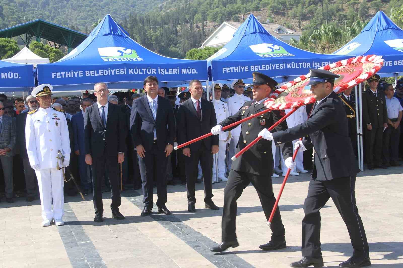 30 Ağustos Zafer Bayramı’nın 102. yıldönümü, ülke genelinde olduğu gibi Muğla’nın Fethiye ilçesinde de törenlerle kutlandı. Çelenk sunma programının ardından tebrikat töreni gerçekleştirildi.