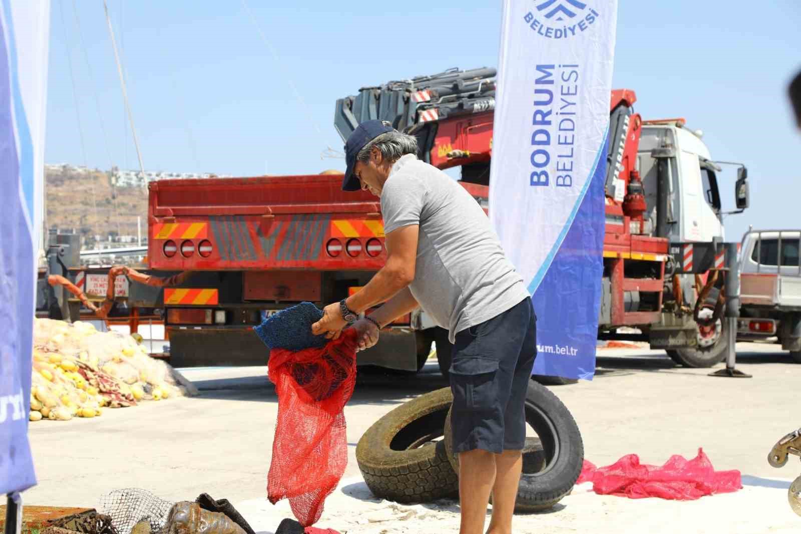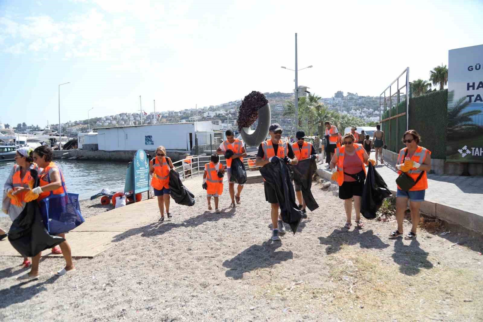 Bodrum Belediyesi tarafından düzenlenen deniz dibi temizliğinin dokuzuncu etabı Gündoğan koyunda yapıldı.