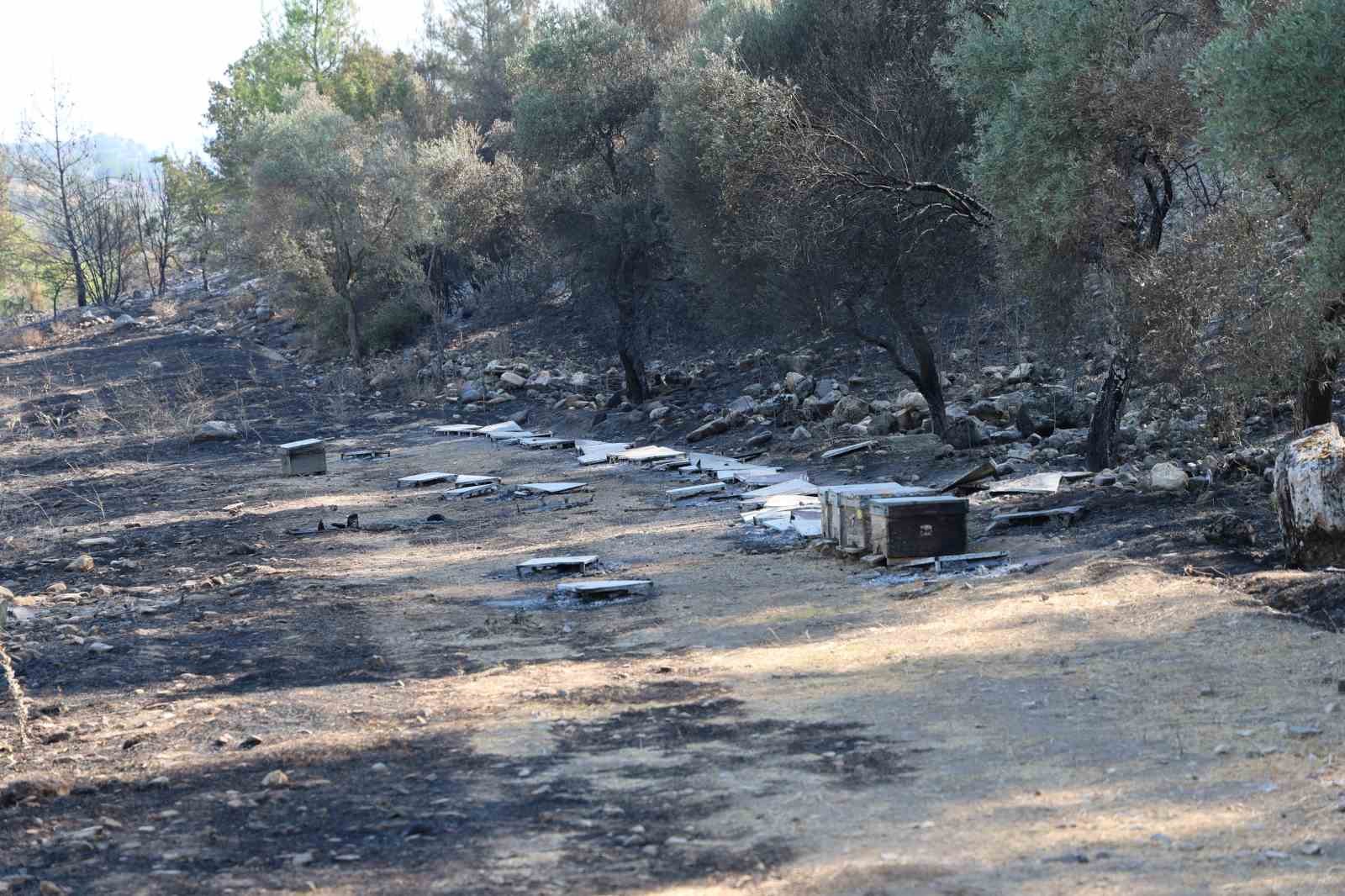 Muğla’nın Yatağan ilçesi Yava Mahallesi’nde orman yangınına sebebiyet veren arı kovanları, onlarca hektar alanın yanmasına sebep oldu.