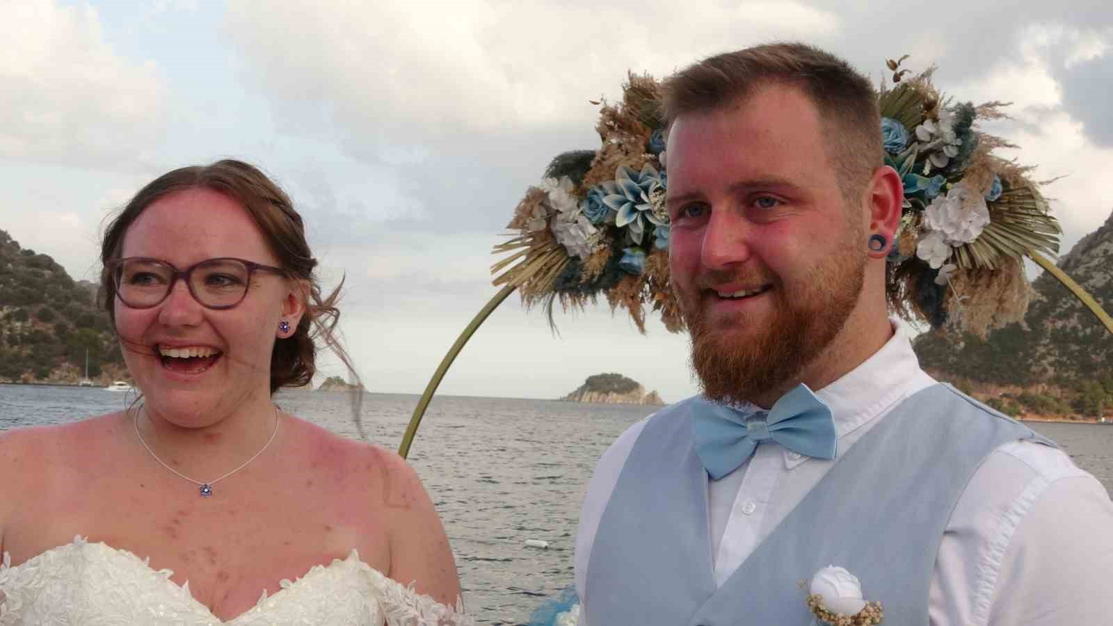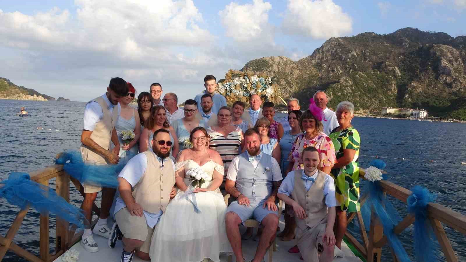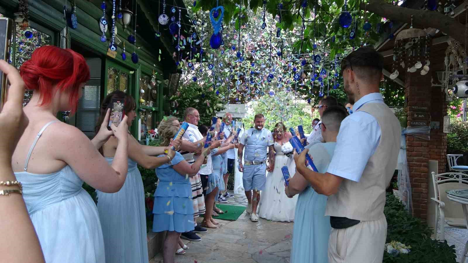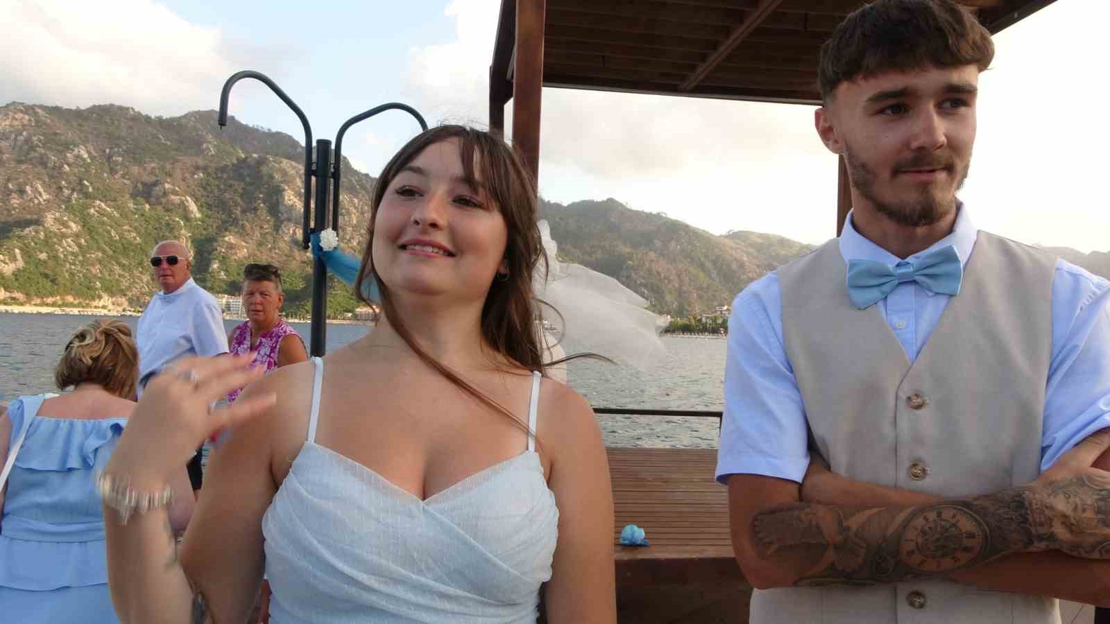 En yakın arkadaşlarının nikahlarına şahitlik ettiği, 5 yaşından bu yana Marmaris’e tatile gelen 20 yaşındaki gelin Katey Smith-Jackson ve 5 yıldır arkadaşlık yaptığı 23 yaşındaki damat Jake Jackson ,”birbirimizi çok seviyoruz, ilk defa birlikte tatile çıktık ve bu anı bu şekilde kutlamak istedik. Bizim için çok güzeldi, çok sevdiğimiz Marmaris’te deniz kenarında hayalini kurduğumuz gibi bir düğün oldu” şeklinde konuştular.