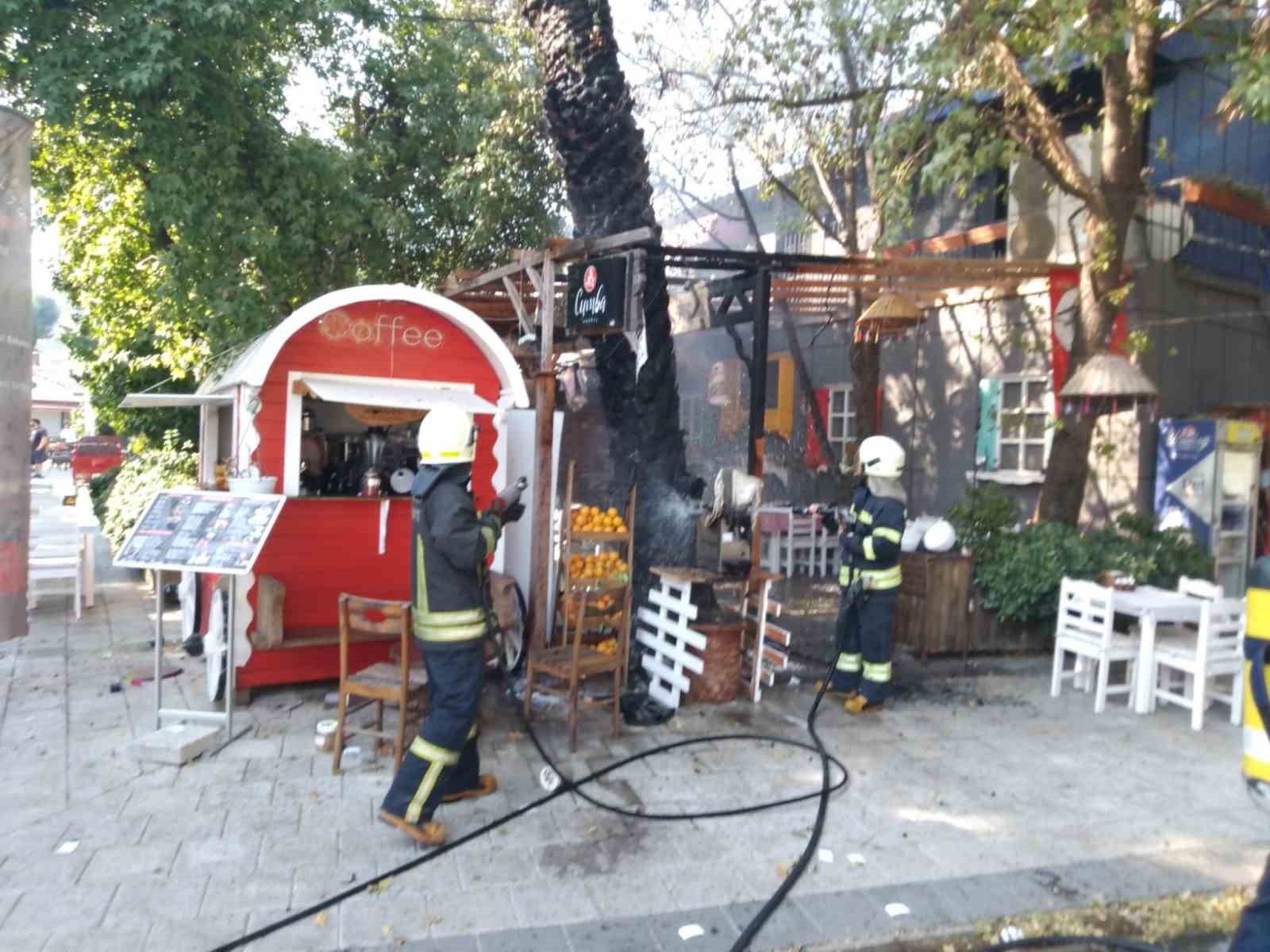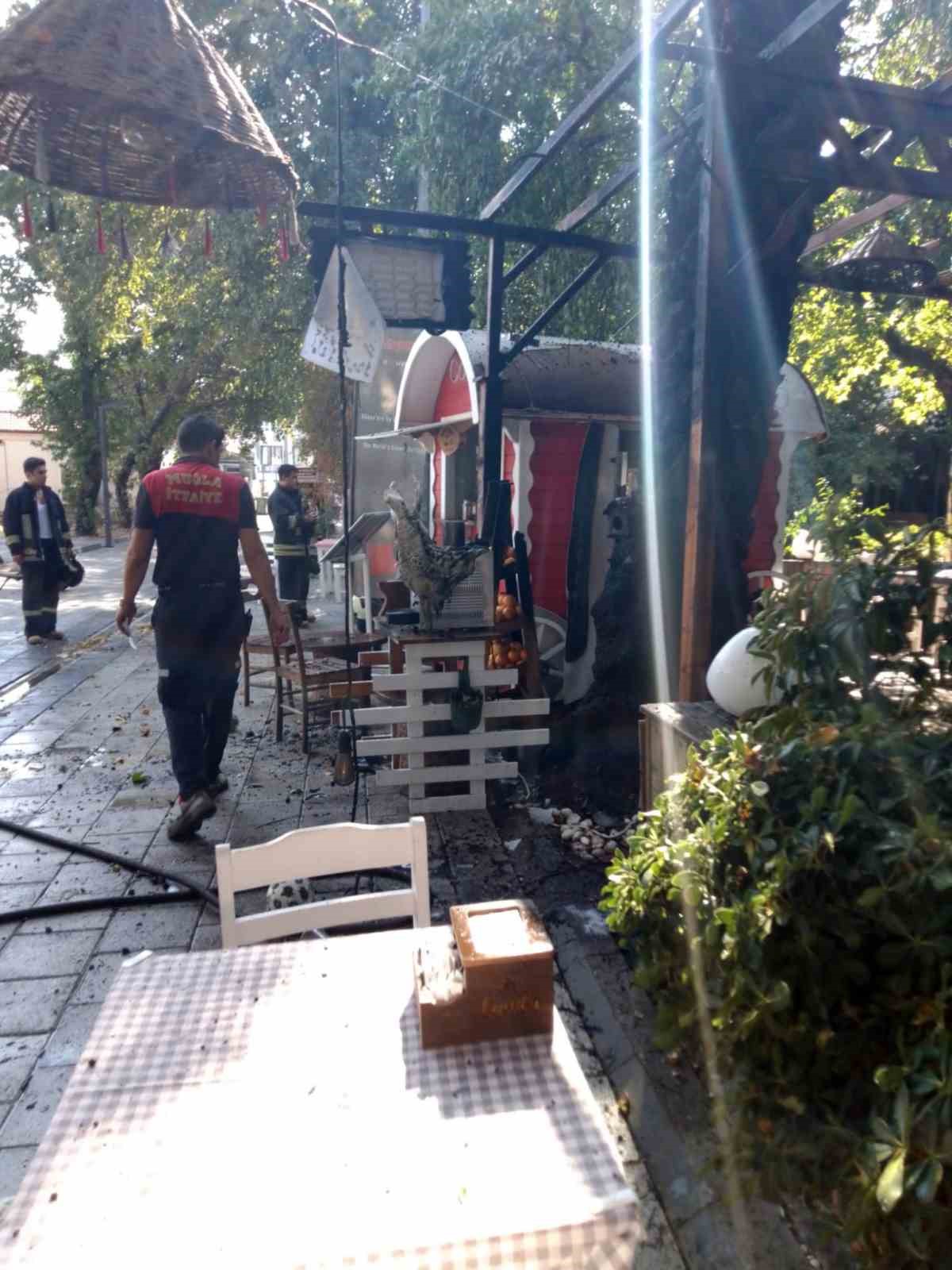 Olay, Fethiye ilçesi Cumhuriyet Mahallesi 91 Sokak üzerinde meydana geldi. Edinilen bilgiye göre, İ.Y.’ye ait bir kafede henüz bilinmeyen bir nedenle tüp patlaması meydana geldi. Büyük bir gürültülü patlamanın ardından alevler yükseldi. Palmiye ağacına sıçrayarak hızla yayılan alevler iş yerini sararken, patlamada işletme sahibi İ.Y. yaralandı. Yangın ihbarı üzerine bölgeye çok sayıda itfaiye, sağlık ve polis ekibi sevk edildi. İtfaiye ekipleri yangına kısa sürede müdahale ederek büyümeden kontrol altına aldı. Yaralı İ.Y. ise ilk müdahalenin ardından sağlık ekiplerince ambulansla hastaneye kaldırıldı. Olayı gören vatandaşlar, çok büyük bir gürültü ile patlama olduğunu ve ardından yangın çıktığını belirtirken, iş yerinin çalışma ruhsatı olmadığı iddia edildi. İtfaiye ekipleri soğutma çalışması gerçekleştirirken, olayla ilgili inceleme başlatıldı.