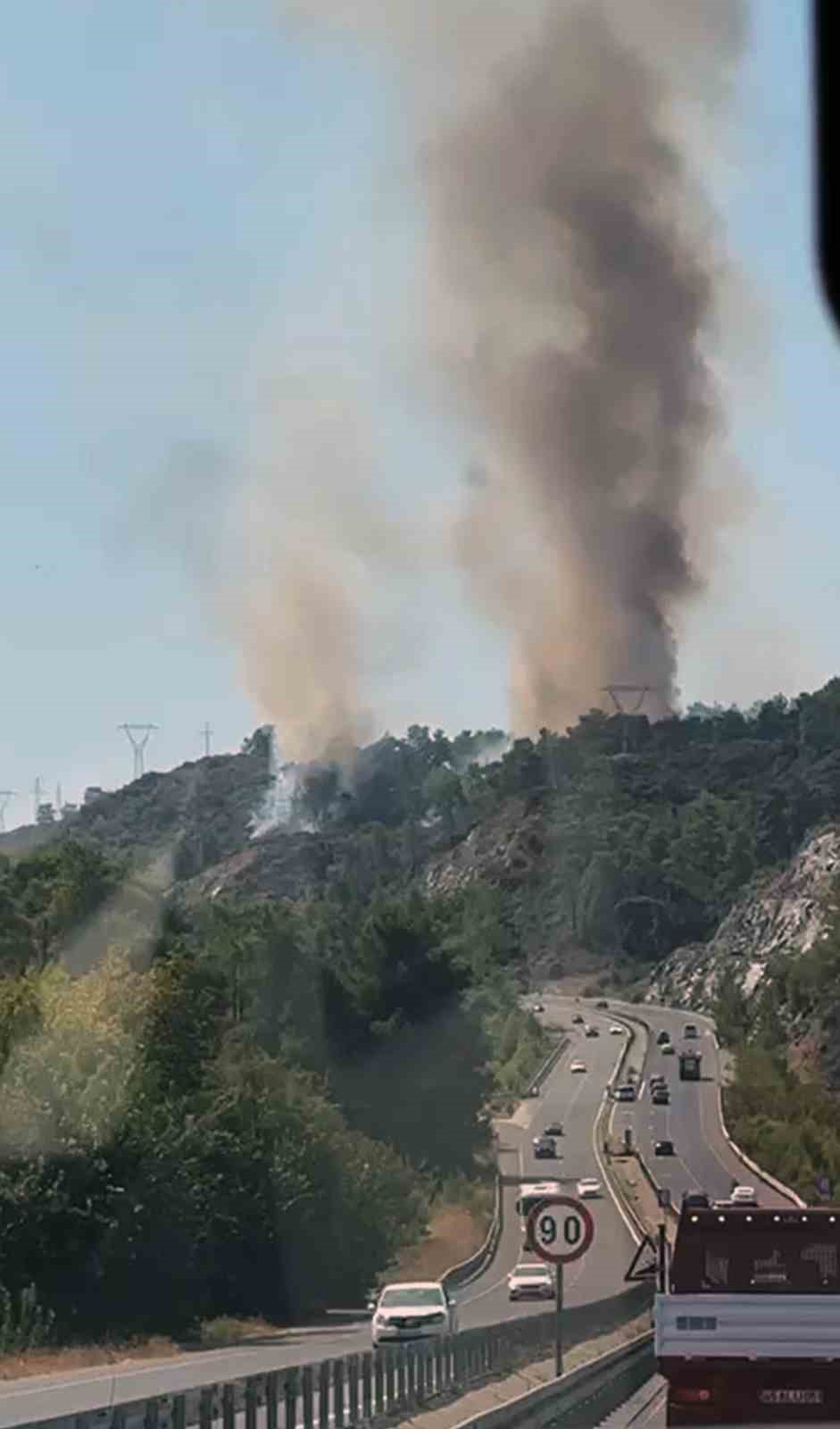 Yangına havadan ve karadan müdahale devam ederken, yangının karayolu kenarında başlaması nedeniyle trafik ekipleri arazöz ve itfaiye araçlarının rahat çalışabilmesi için ulaşımı çift yönlü geçici olarak durdurdu.