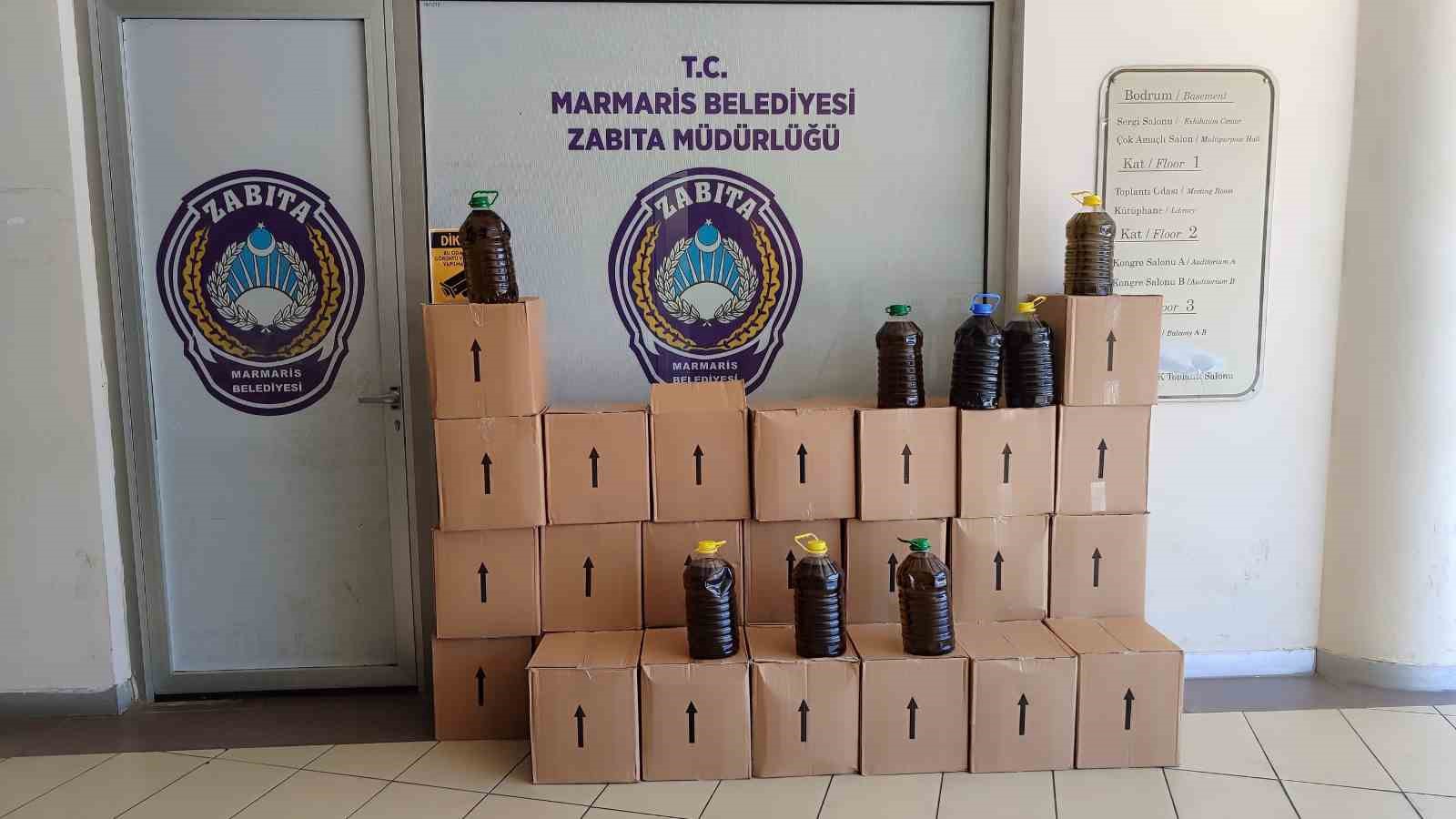 Muğla’nın Marmaris ilçesinde belediye zabıta ekiplerinin dikkati, zeytinyağı adı altında satışa sunulan ancak menşei belli olmayan 672 litre yağın piyasaya sürülmesini önledi.