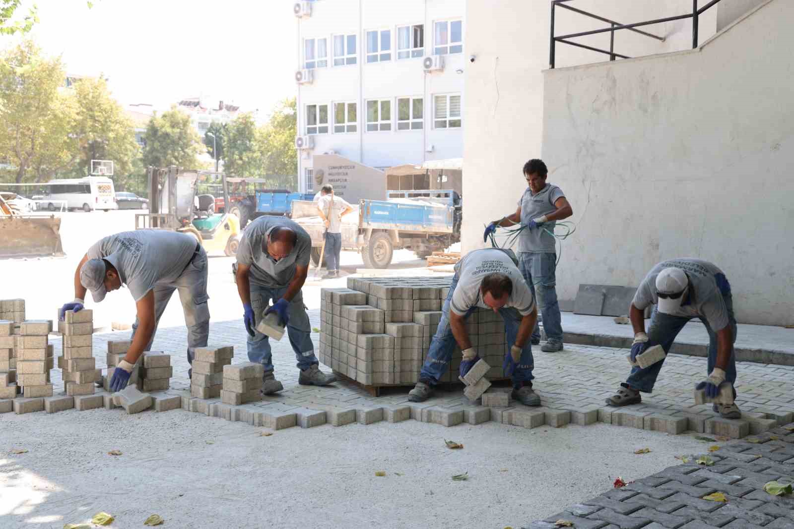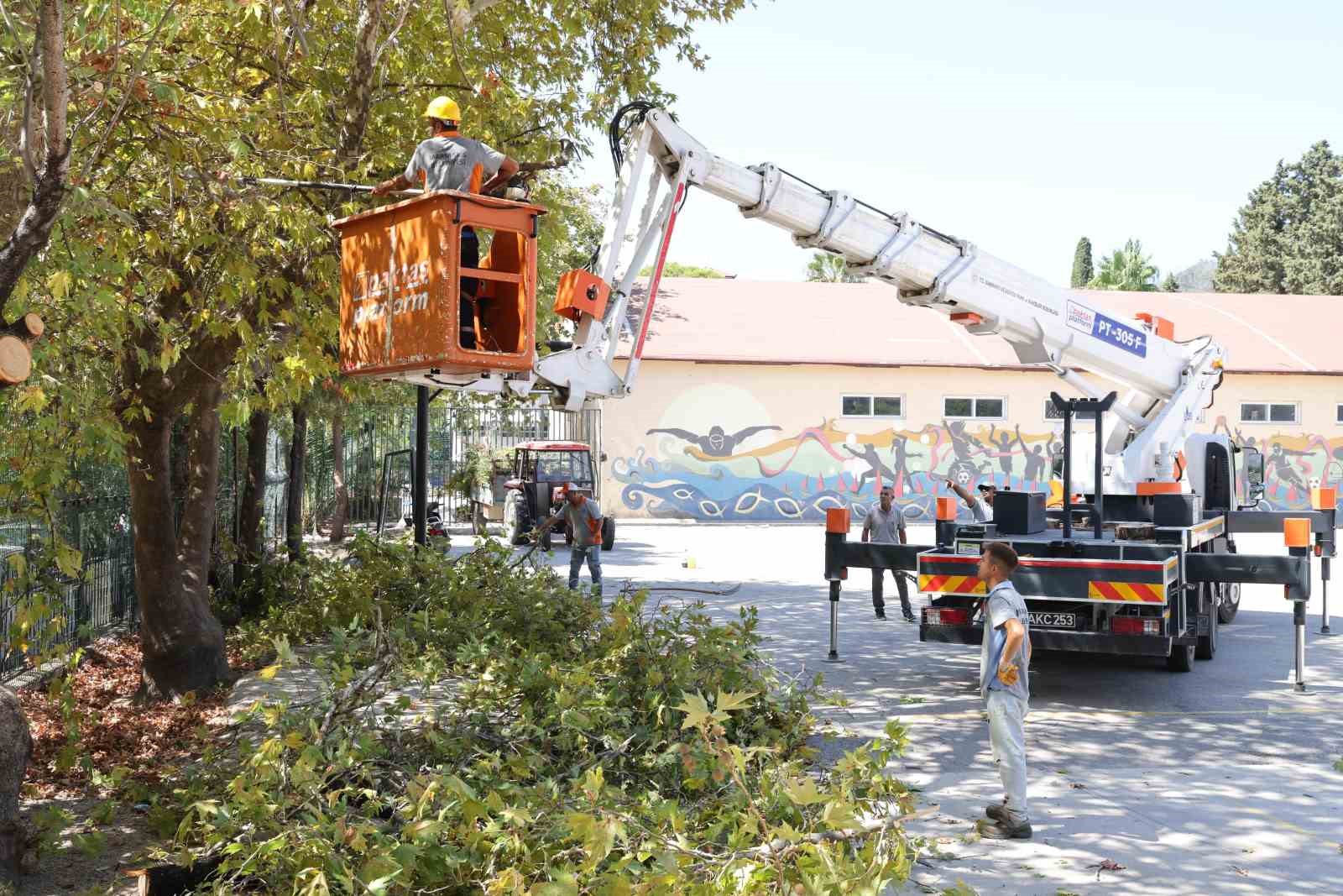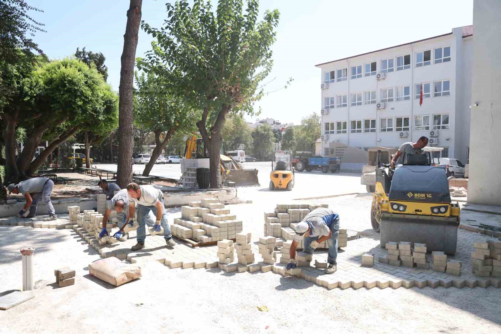 Park ve Bahçeler ekibi kırsal mahallelerdeki okullar başta olmak üzere ilçedeki devlet okullarının bahçesinde bakım ve budama yaptı. Büyüyen ağaçları budayıp, yeşil alanlarda peyzaj çalışması yapılırken Temizlik İşleri çalışanları da detaylı bir temizlik gerçekleştirdi. Fen İşleri personeli de talep edilen okullarda bahçe düzenlemesi yaptı. Marmaris Ortaokulu’nda kaldırılan çeşme alanına parke taşı döşeyerek bahçe alanına katan ekipler çocukların rahatlıkla oynayacağı bir yer oluşturdu.