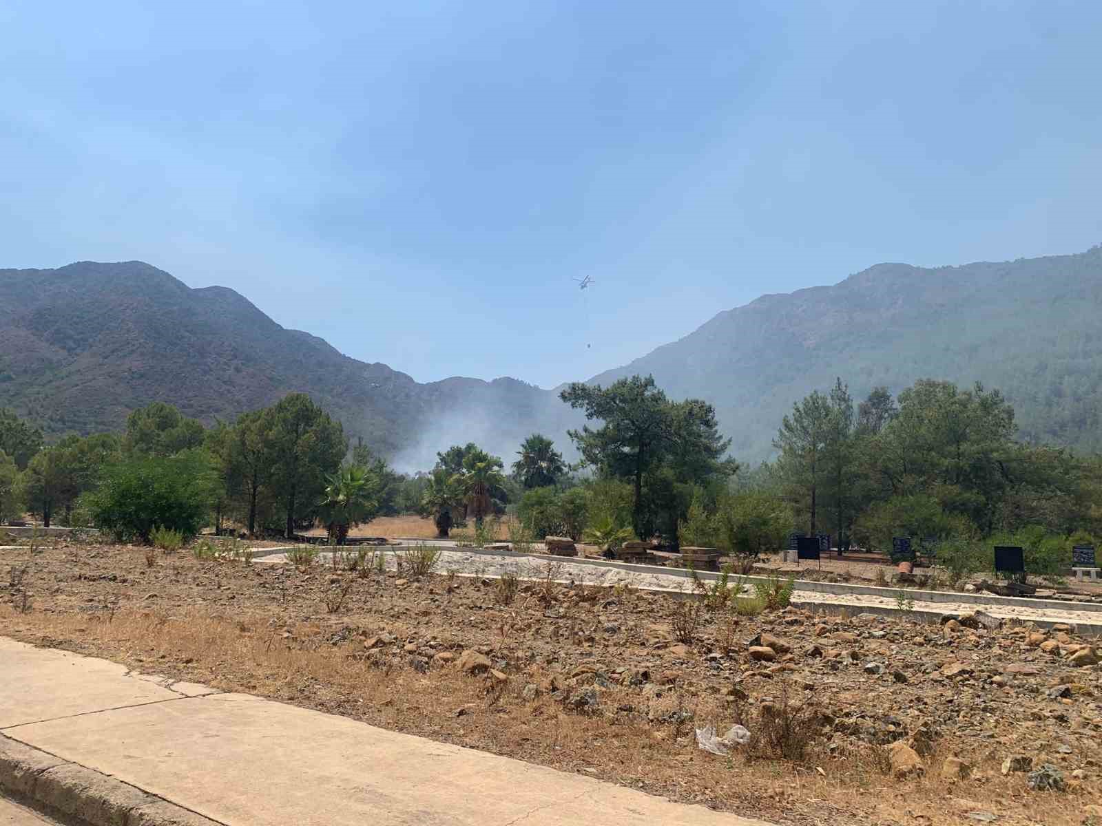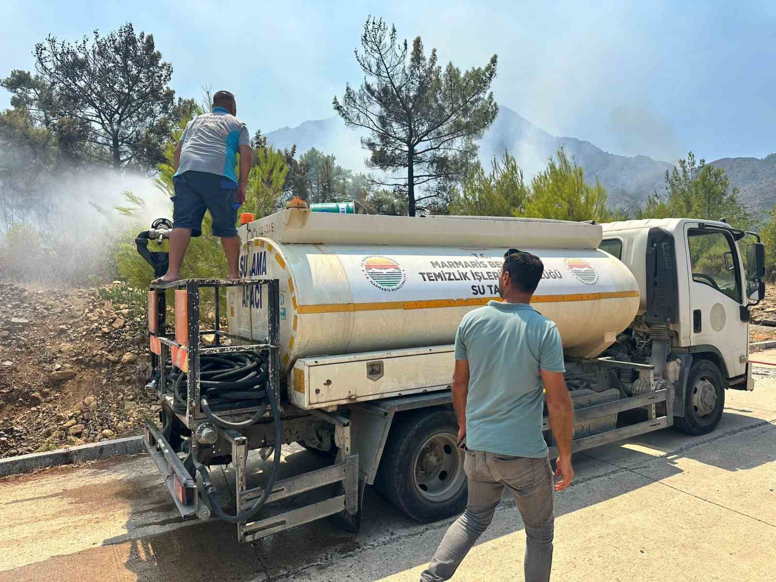 Muğla’nın Marmaris ilçesinde Aksaz Deniz Üs Komutanlığı bölgesindeki ormanlık alanda yangın çıktı.