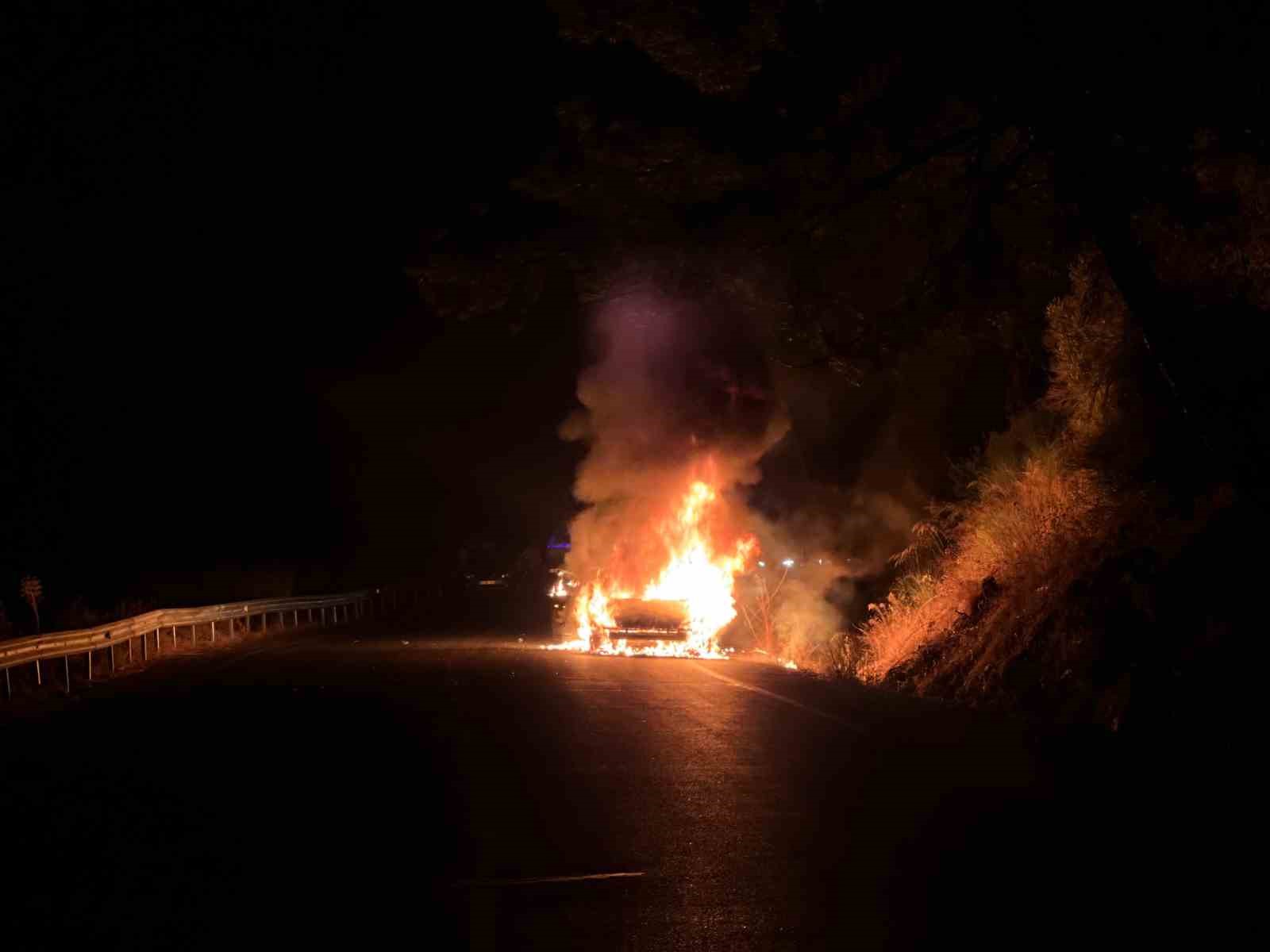 Muğla’nın Marmaris ilçesinde alev alan otomobil küle döndü.