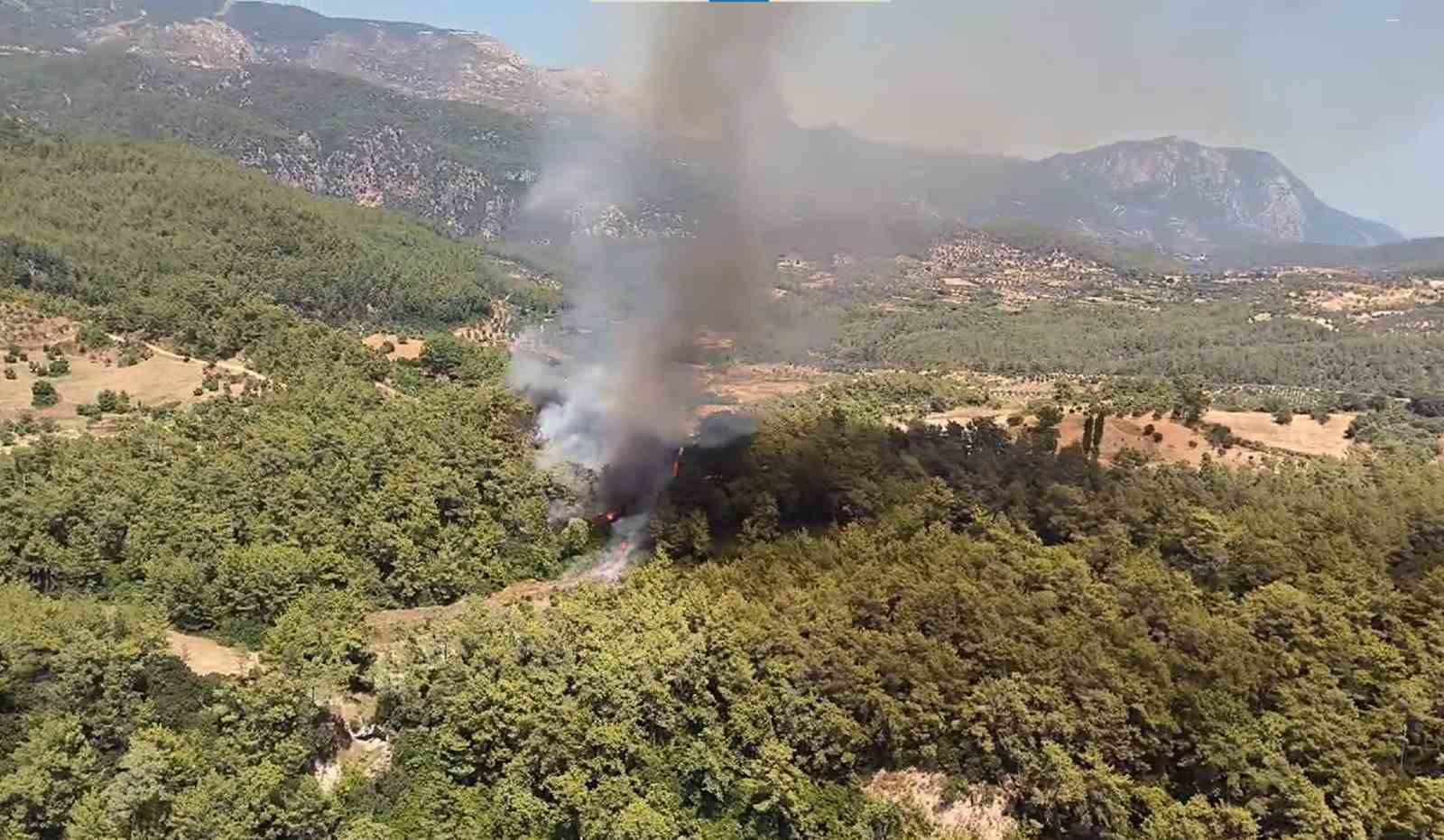 Milas ilçesine bağlı Alatepe Mahallesinde başlayan yangın sonrası bölgeye çok sayıda hava ve kara ekipleri sevk edildi. İlk müdahale vatandaşlar tarafından çalı çırpı ile yapılırken, ekiplerin yangın bölgesine sevkinden sonra kara ve hava araçları ile orman işçileri yangına müdahale ediyor.