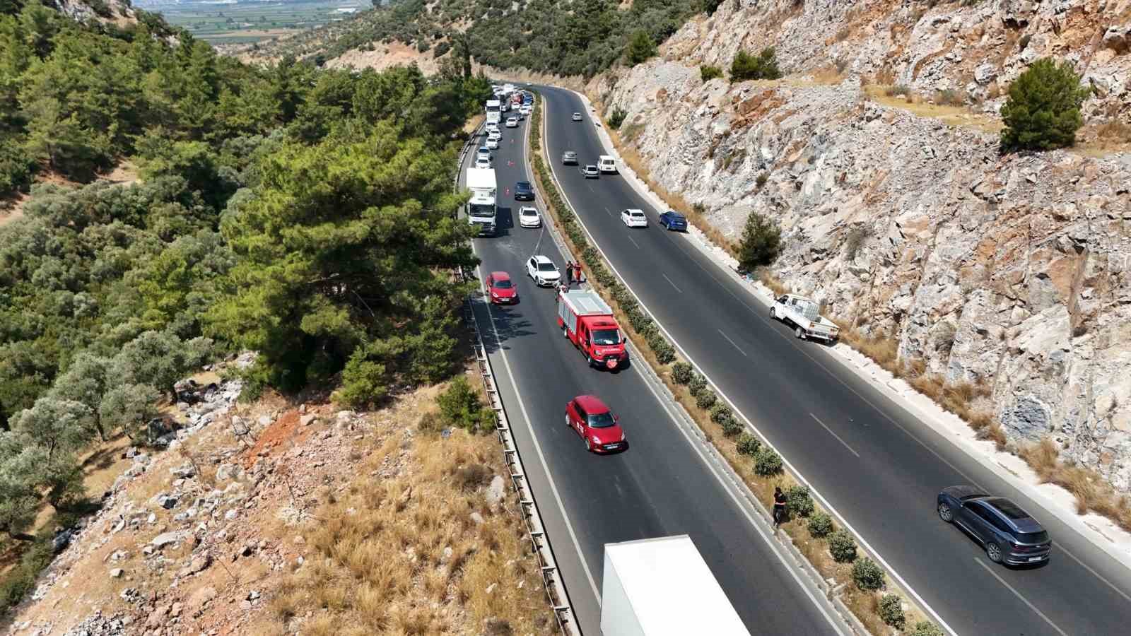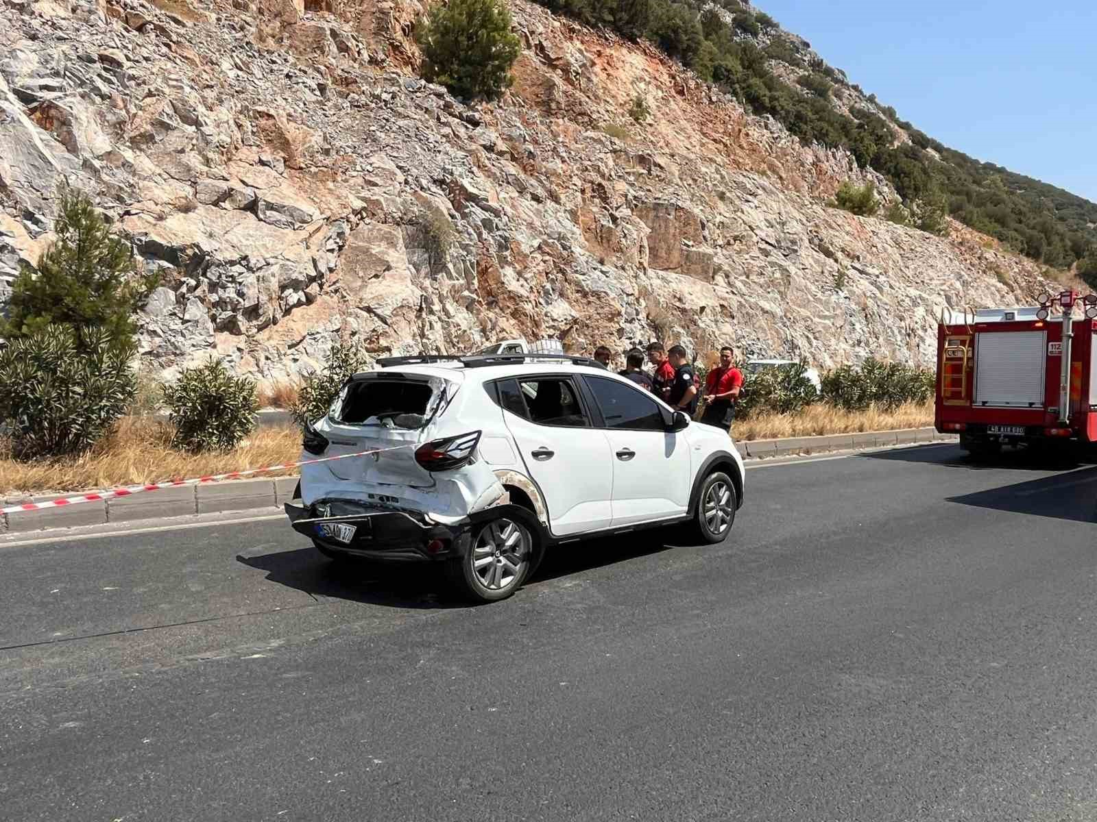 Kaza, Milas-Bodrum karayolu Karakaya Mevkii’nde kent merkezine seyir halinde olan TIR’ın, aynı yönde ilerleyen bir otomobile çarpması sonucu gerçekleşti. Kazada otomobilde bulunan 4 kişi yaralandı. 112 Acil Çağrı Merkezine bilgi verilme i üzerine olay yerine Muğla Büyükşehir Belediyesi itfaiye, sağlık ve trafik ekipleri sevk edildi.