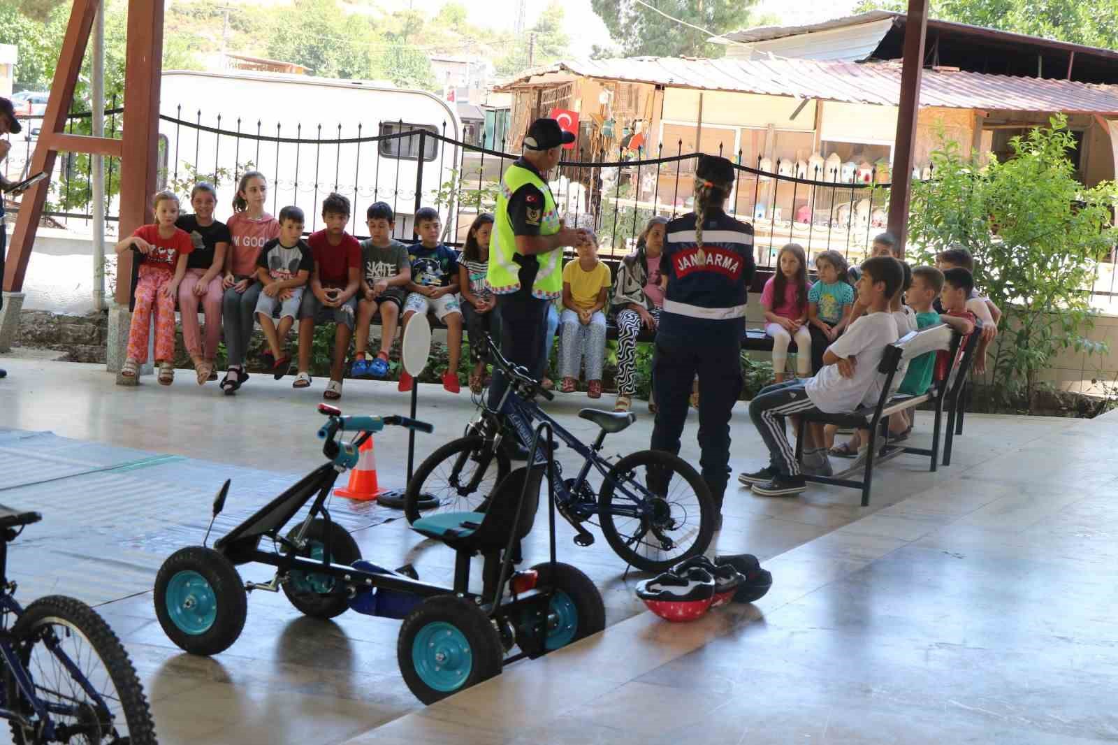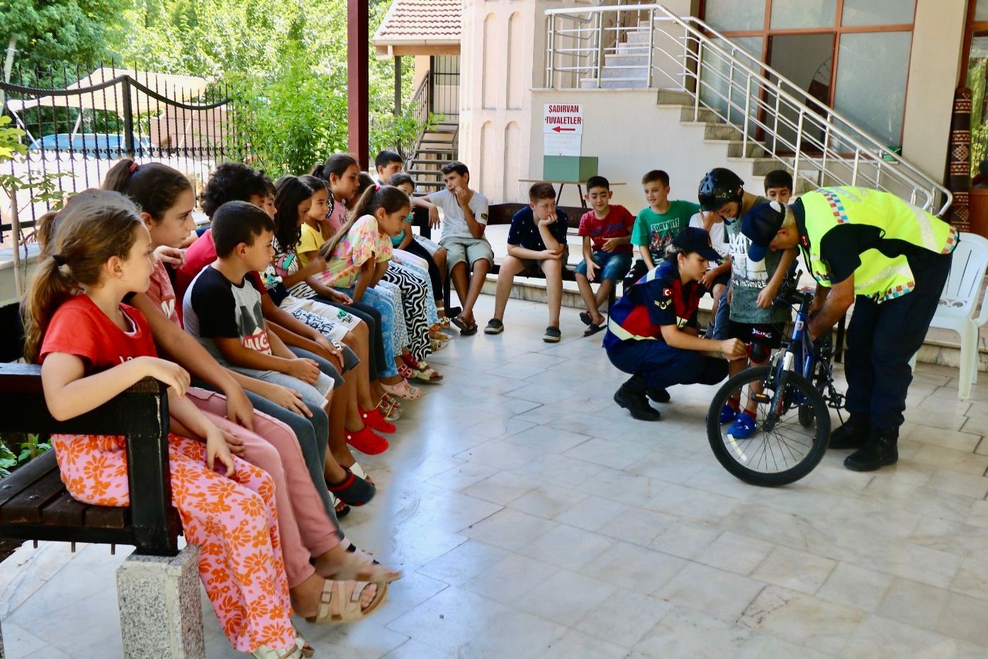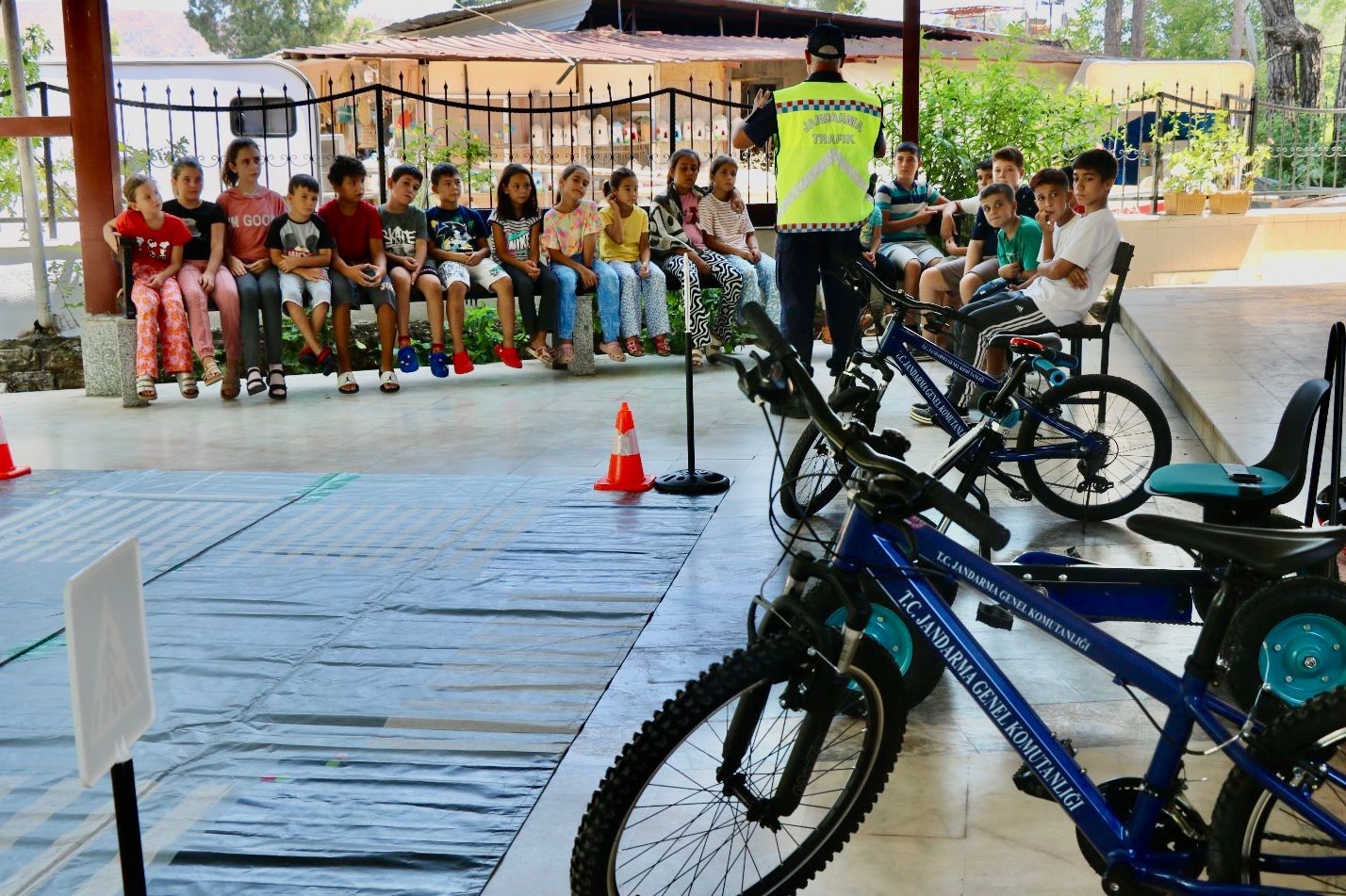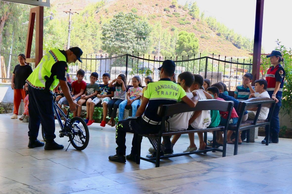 Muğla İl Jandarma Komutanlığı Trafik Şube Müdürlüğü Mobil Trafik Güvenliği Eğitim Timi tarafından 29-31 Temmuz 2024 tarihleri arasında Menteşe ilçesinin Dokuzçam, Orhaniye Kırkbirevler ve Marmaris Değirmenyanı camilerinde Kur’an kursu eğitimi gören 92 öğrenciye trafik eğitimi verildi.