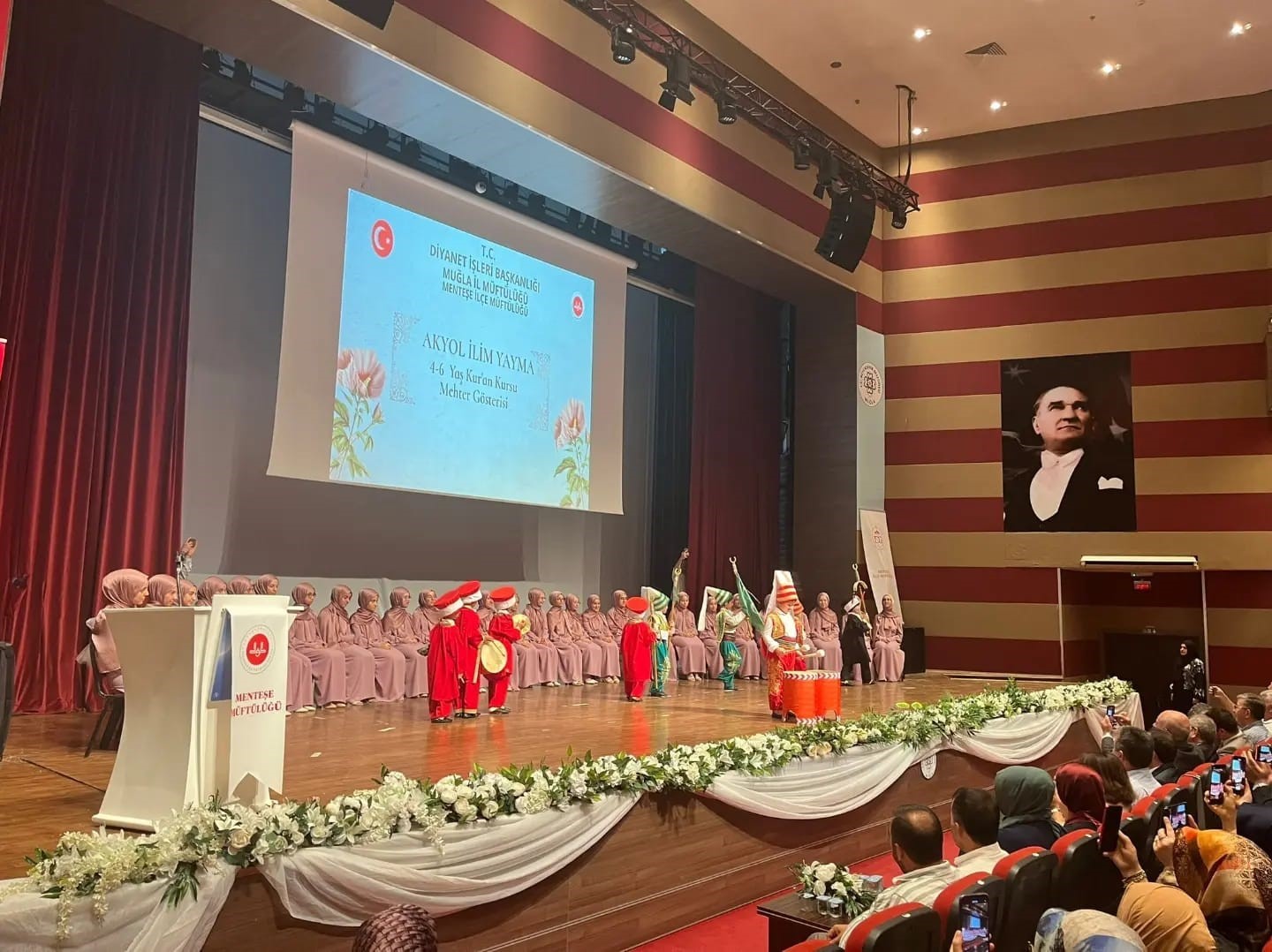 Menteşe Müftüsü Dr. Ertuğrul Akın ise konuşmasında müftülük ve kurslarda verilen hizmetleri anlattı. Erkek ve kız yurtlarında hafızlık yapan öğrencilerden bahseden Müftü Akın, hedeflerinin Muğla Menteşe’yi hafızlıkta bölgede marka yapmak olduğunu dile getirdi. Program, İstanbul Nuruosmaniye Camii İmam Hatibi Nizamettin Sevil’in okuduğu Kur’an tilaveti ve Edvar Musiki Derneği Tasavvuf Korosu’nun icra ettiği ilahilerle devam etti. Okunan Kur’an tilaveti ve ilahi eserler izleyenlerden tam not aldı. Hazırlık sınıfının oratoryosu, hafızlık öğrencilerinin ilahi icrası ve Akyol İlim Yayma 4-6 Yaş Kur’an Kursu öğrencilerinin mehter gösterisi izleyenlerden büyük beğeni topladı. Program sonunda ise taç giyme merasimi ve annelere hafızların çiçek takdimi esnasında duygu dolu anlar yaşandı. Program, dua edilmesi, hafızlara hediye verilmesi ve toplu fotoğraf çekimi ile son buldu.