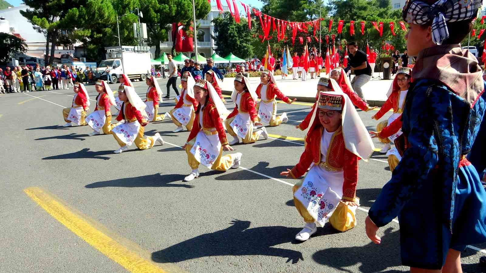 Muğla Valiliği tarafından organize edilen etkinlikler, Cumhuriyet Meydanı’nda gerçekleştirilen çelenk sunma töreni ile başladı. Muğla Valiliği, Garnizon Komutanlığı ve Muğla Büyükşehir Belediyesi’nin Atatürk Anıtı’na çelenk sunmasıyla başlayan program, daha sonra Muğla Valiliği’nde düzenlenen tebrikat töreniyle devam etti. Tebrikat töreninin ardından Cumhuriyet Meydanı’nda düzenlenen etkinliklerle bayram coşkusu sürdü. Jandarma Maliye Üsteğmen Osman Çakmak’ın günün anlam ve önemine dair yaptığı konuşmanın ardından, Emirbeyazıt İlkokulu Folklor Ekibi ve Muğla Büyükşehir Belediyesi Halk Oyunları Topluluğu dans gösterileri sundu. Etkinlikler, komandoların gösterisi ve tören geçişiyle sona erdi.