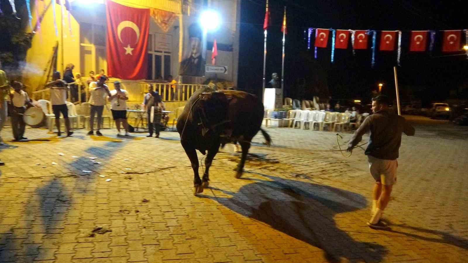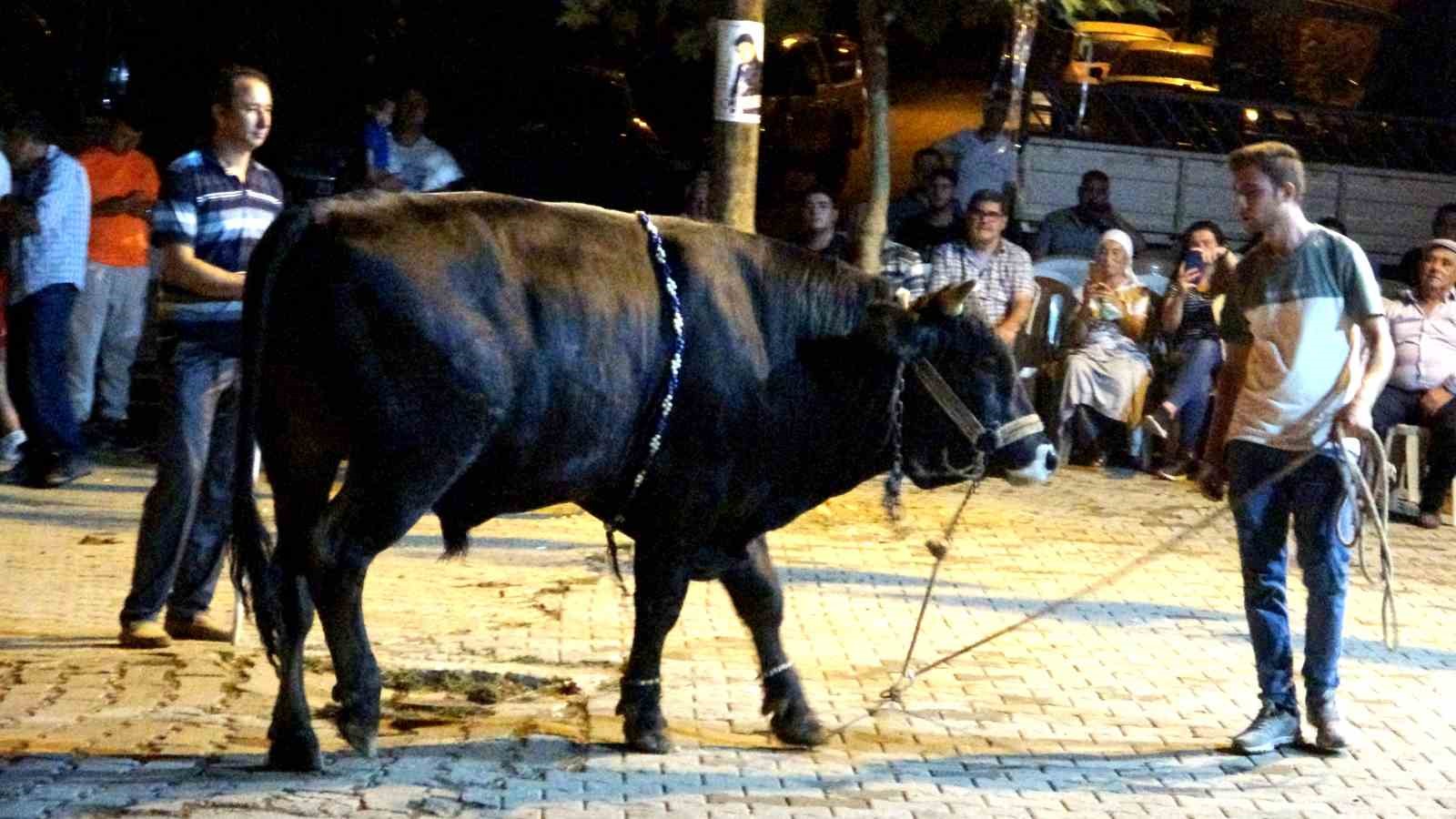 Muğla’nın Menteşe ilçesi Algı Mahallesi’nde bu yıl 10’uncusu düzenlenecek olan boğa güreşi öncesinde boğalar görücüye çıkarıldı. Geleneksel festival kapsamında düzenlenen etkinlikte, güreşecek boğalar davul zurna eşliğinde vatandaşlara tanıtıldı.