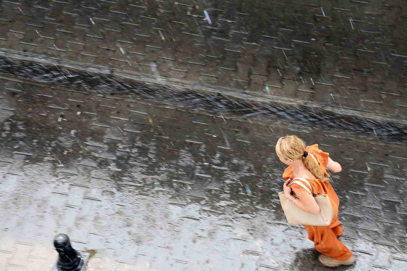 Menteşe ilçesinde güneşli ve yaklaşık 34 derece dolayında seyreden hava sıcaklığında aniden yağmur yağışı başladı. Güneşli havada başlayan yağmur ile sokaktaki vatandaşlar yağmura hazırlıksız yakalandı.