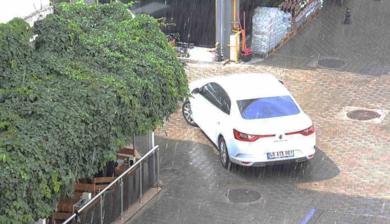 Yaklaşık 5 dakika devam eden güneşli havadaki yağmur yağışı yerini bulutlu havaya bırakırken, yağmur yağışı bulutlar ile sona erdi.