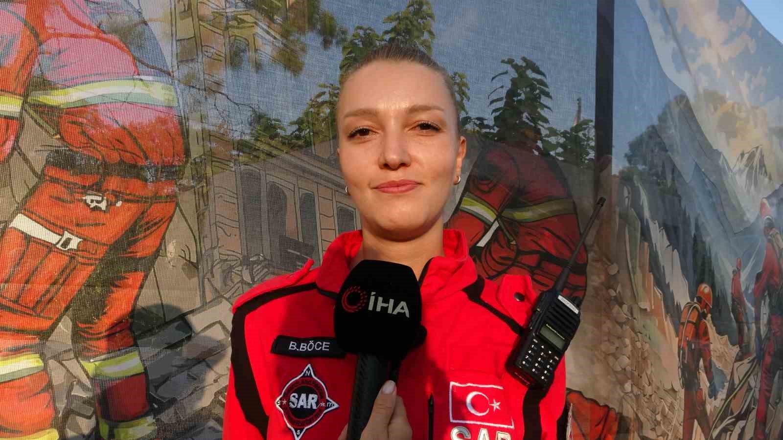 1 yıldır SAR Arama Kurtarma ve Acil Yardım Derneğinin üyesi olan ve Muğla il temsilciliği Akreditasyon Ekip Lideri Buket Böce, ekip arkadaşlarının 3 yıldızlı bu ağır akreditasyon sertifikasını almalarının büyük bir gurur kaynağı olduğunu belirterek, “Biz de onların peşlerinden gidiyoruz. Tek yıldız, 2 yıldız ve 3 yıldız olmak üzere bu yolda emin adımlarla ilerleyeceğiz. SAR Arama Kurtarma ekibinde kadın olmak gerçekten çok gurur verici. Çok büyük bir oranımız var. Fakat bir afet anında veya acil bir durumda kadın veya erkek olmak gibi bir ayrım olmuyor. Afetzede olarak da, arama kurtarma olarak da böyle durumlarda acil durumlarda cinsiyet farkı gözetilmediği için çok rahatlıkla, çok iyi bir koordinasyon ve disiplinle hep birlikte çalışıyoruz. Arama kurtarma, eğitim süreçlerimizde de çok zorlu süreçlerden geçiyoruz. İp eğitimleri, teknik arama kurtarma ve sismik akustik cihazlarla dinleme gibi çeşitli alanlarda profesyonelleşiyoruz” dedi. Böce, ekip üyelerinin farklı alanlarda uzmanlaştığını ve bu profesyonelliği paylaşarak başarılı operasyonlar gerçekleştirdiklerini vurguladı.