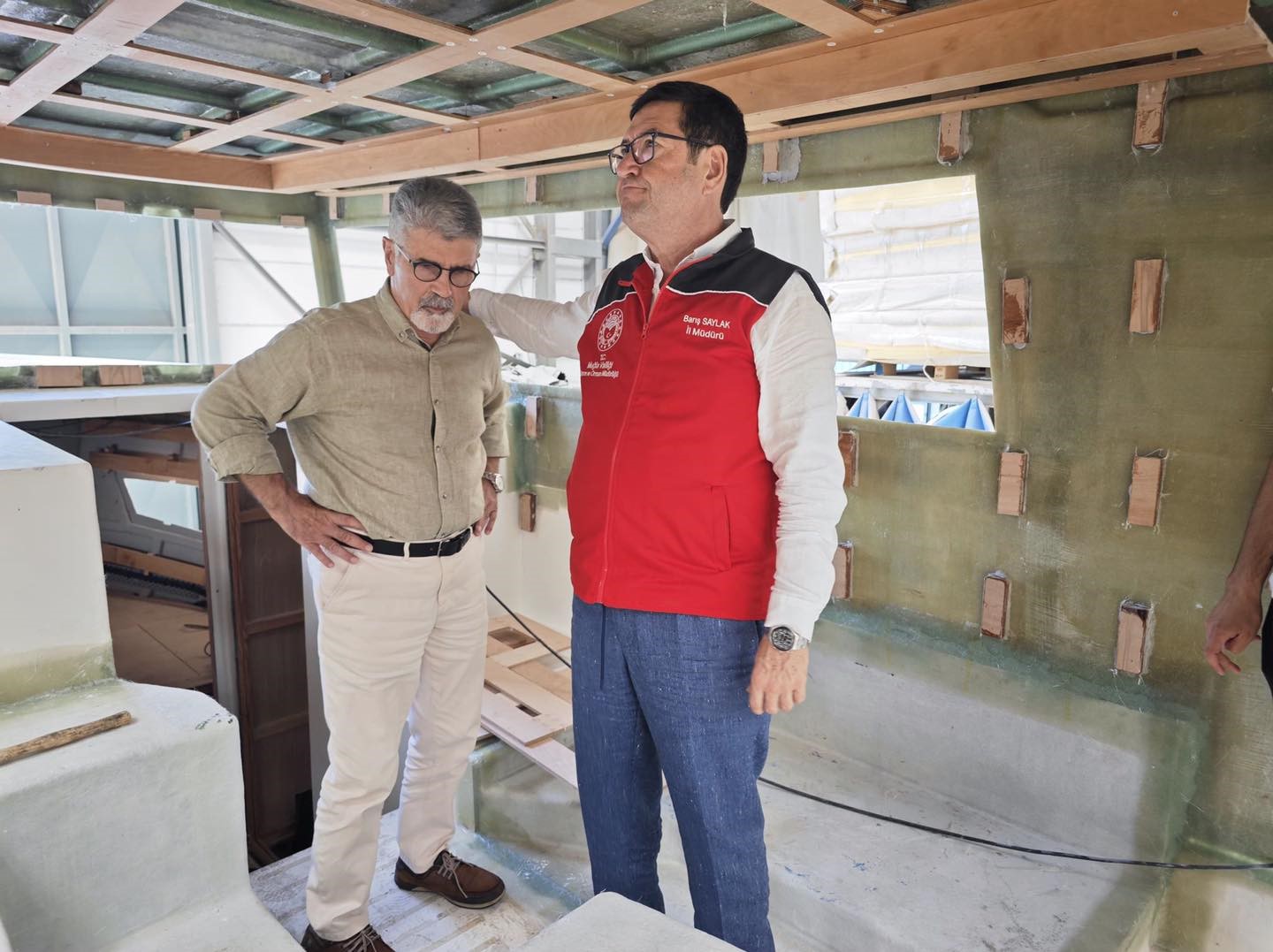 Muğla Tarım ve Orman İl Müdürü Barış Saylak, Muğla Valiliği YİKOB tarafından ihalesi yapılan ve yapımı devam eden tam donanımlı kontrol gemisini yerinde inceledi.