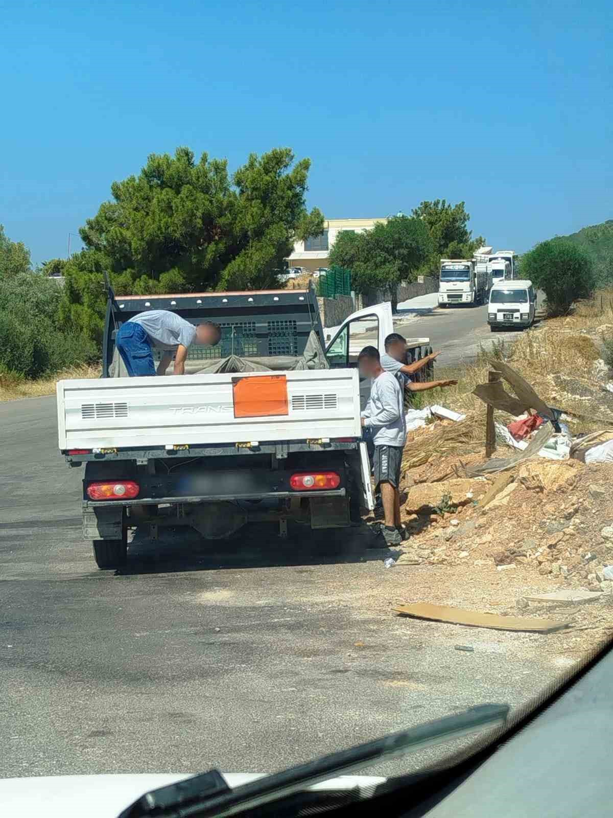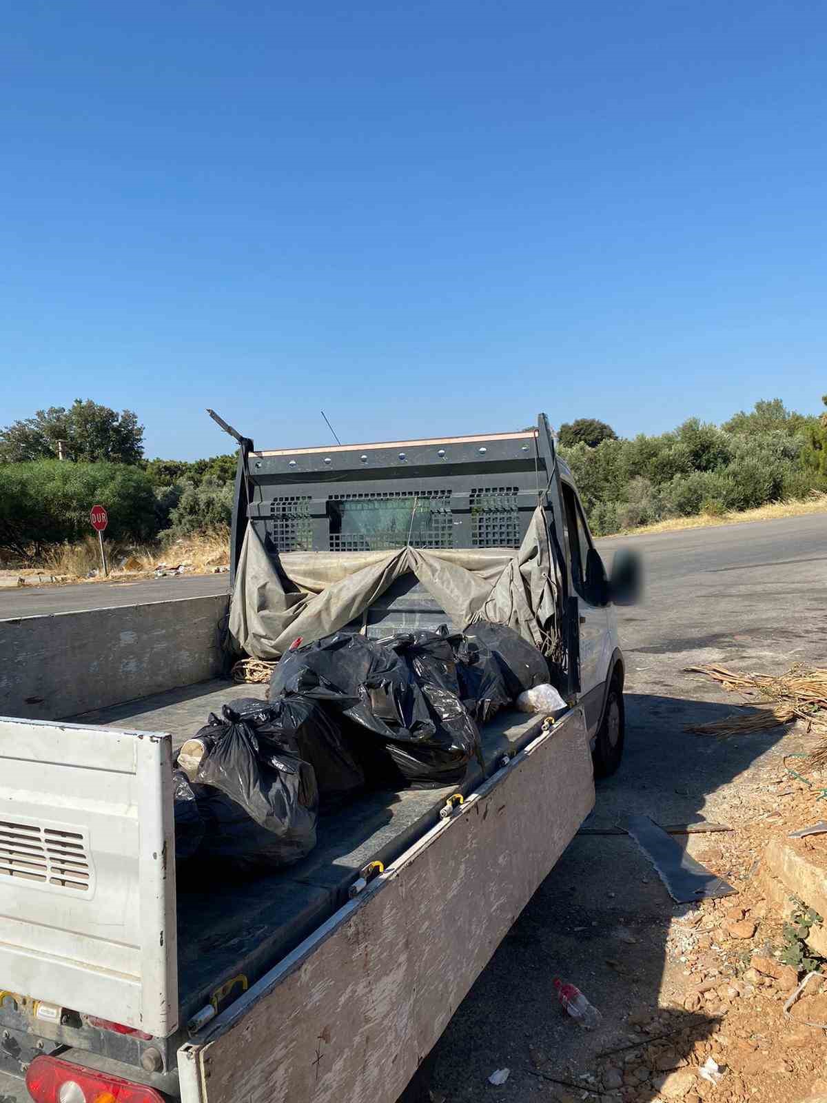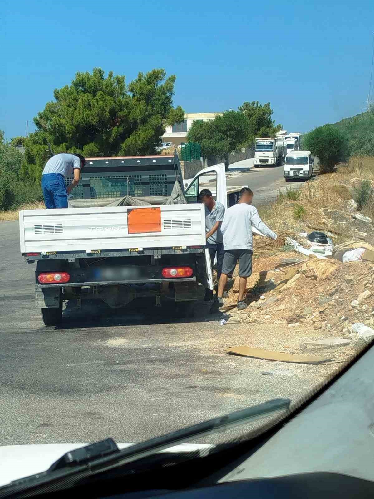 Muğla’nın Bodrum ilçesinde çöplerini yol kenarına atan şahıslar, kesilen cezanın ardından attıkları çöpleri geri topladı.