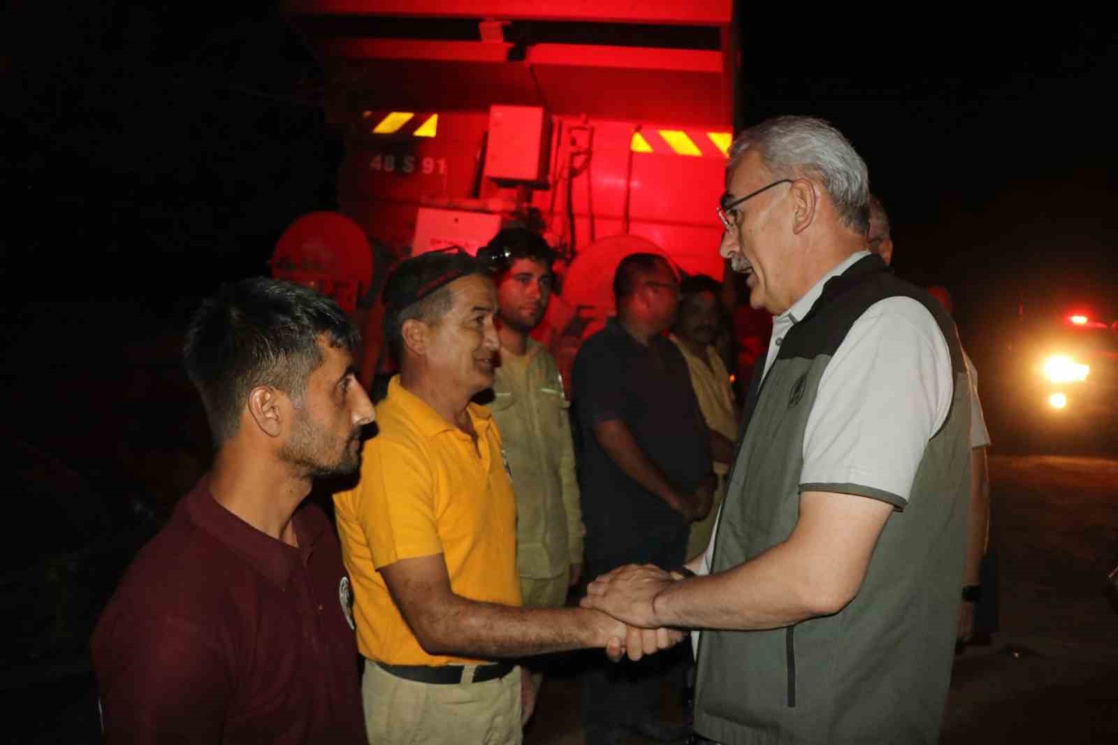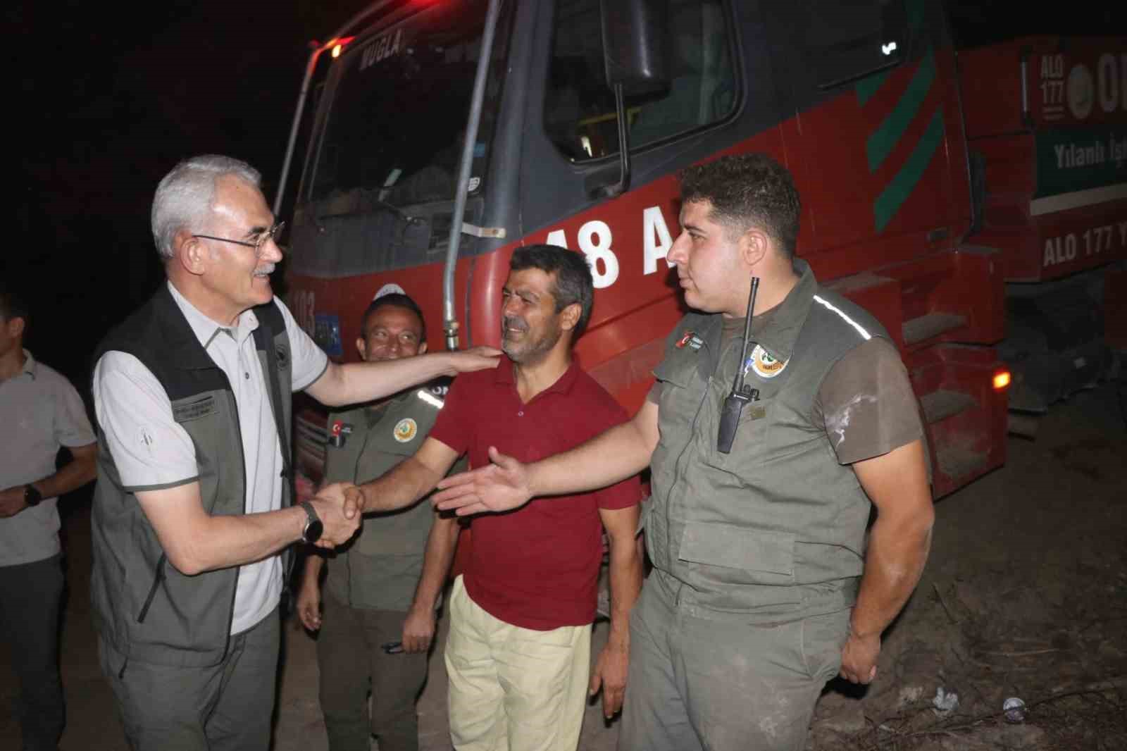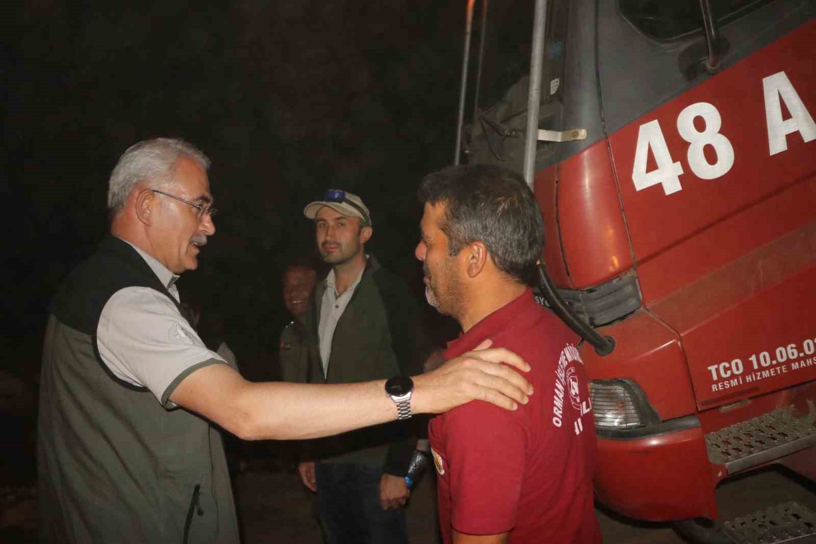 Muğla’nın Ula ilçesinde kırsal bölgedeki orman yangını bölgesinde gece boyunca süren çalışmaları yerinde incelemek için sahada görev yapan ekiplere ve gönüllü vatandaşlara moral ziyaretinde bulunan Orman Genel Müdürü Bekir Karacabey, alevlerin kontrol altına alınması için emek veren herkese teşekkür etti.