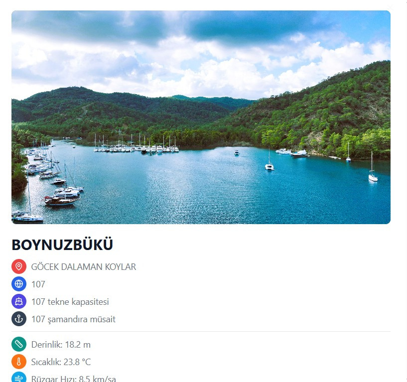 DERİA web sitesi ve mobil uygulaması üzerinden tekneler bağlama noktalarını harita üzerinde görebilecek, rezervasyon yapabilecek ve ödemelerini çevrim içi gerçekleştirebilecek.
