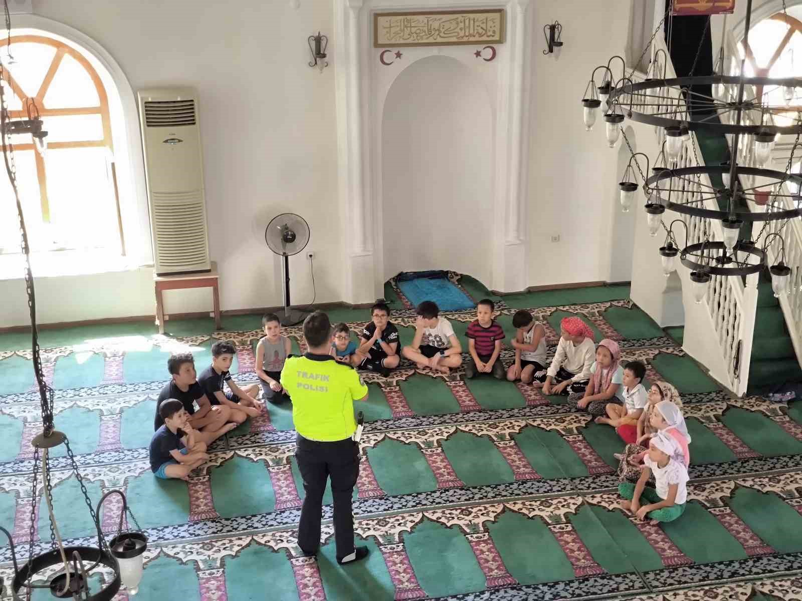 Muğla Emniyet Müdürlüğü Trafik Tescil ve Denetleme Şube Müdürlüğü ile Toplum Destekli Polislik Şube Müdürlüğü personeli tarafından Menteşe ilçesindeki yaz Kur’an Kurslarında eğitim gören öğrencilere yönelik trafik kuralları ve kişisel güvenlik konularında eğitim programı düzenlendi.