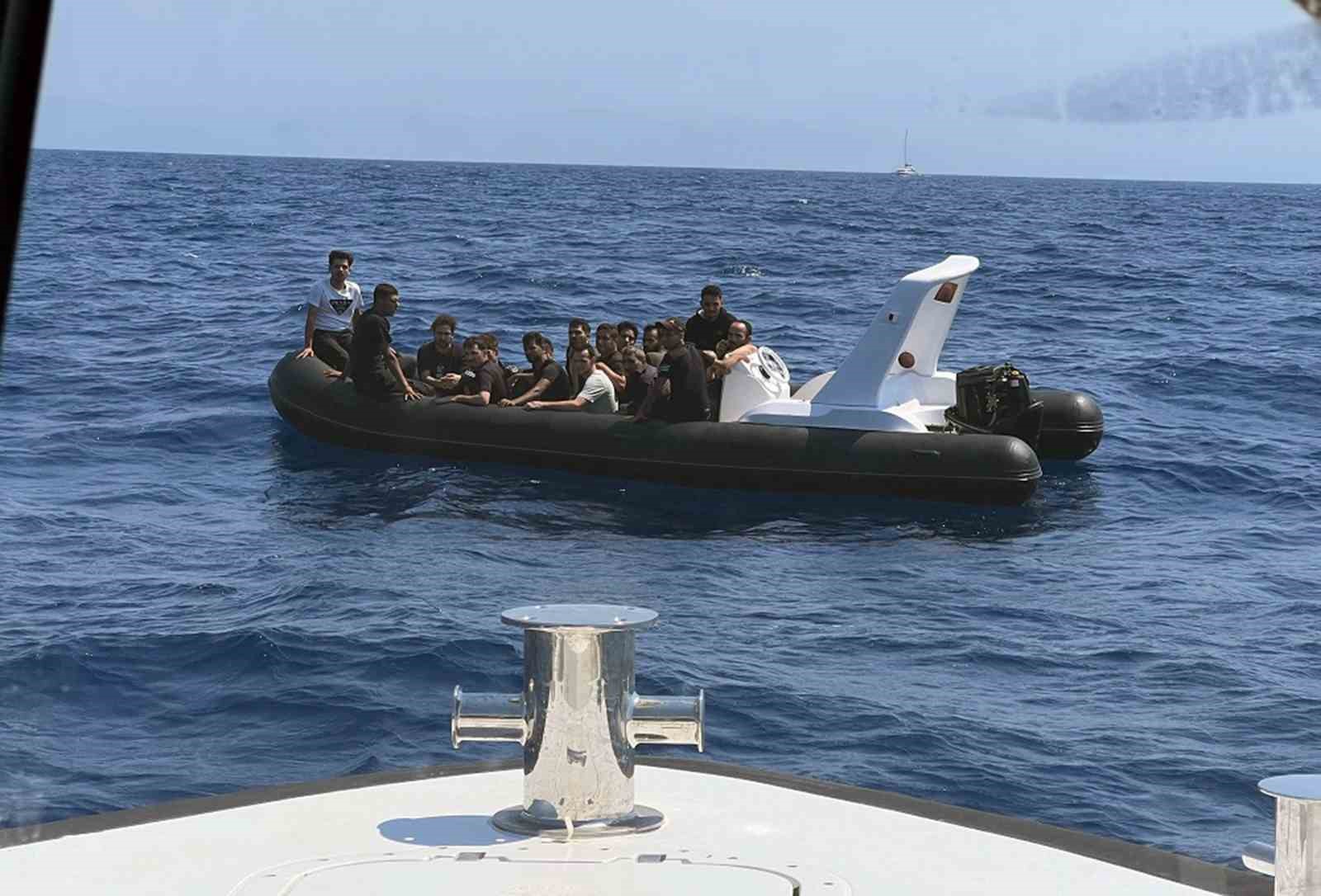 Marmaris açıklarında yasa dışı yollardan fiber karinalı lastik bot ile çıkış yaptığı tespit edilen 20 düzensiz göçmen ise Sahil Güvenlik ekipleri tarafından yakalandı.